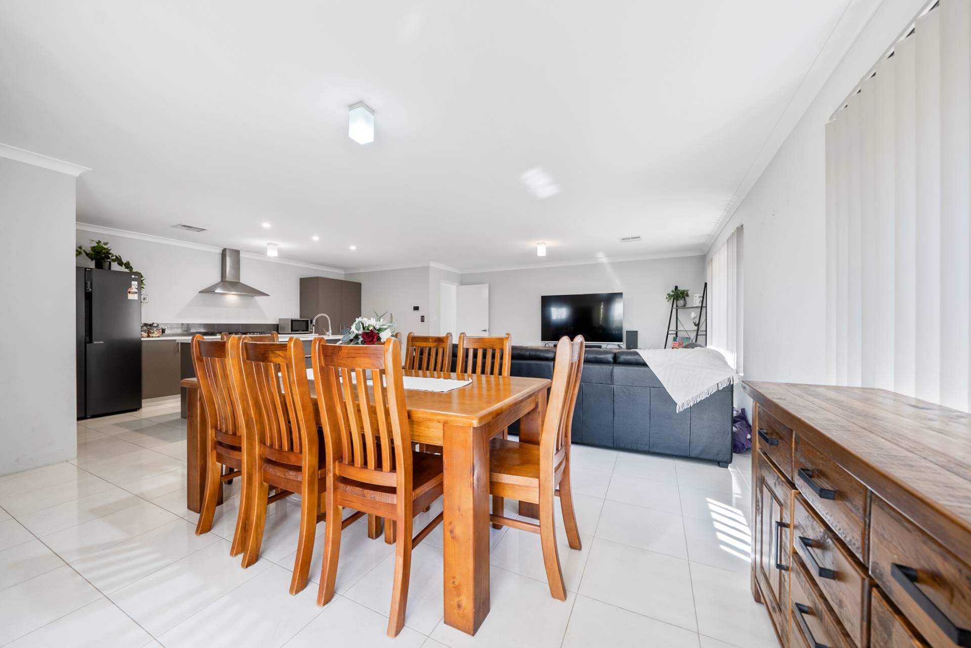Central open-plan living and dining zone
