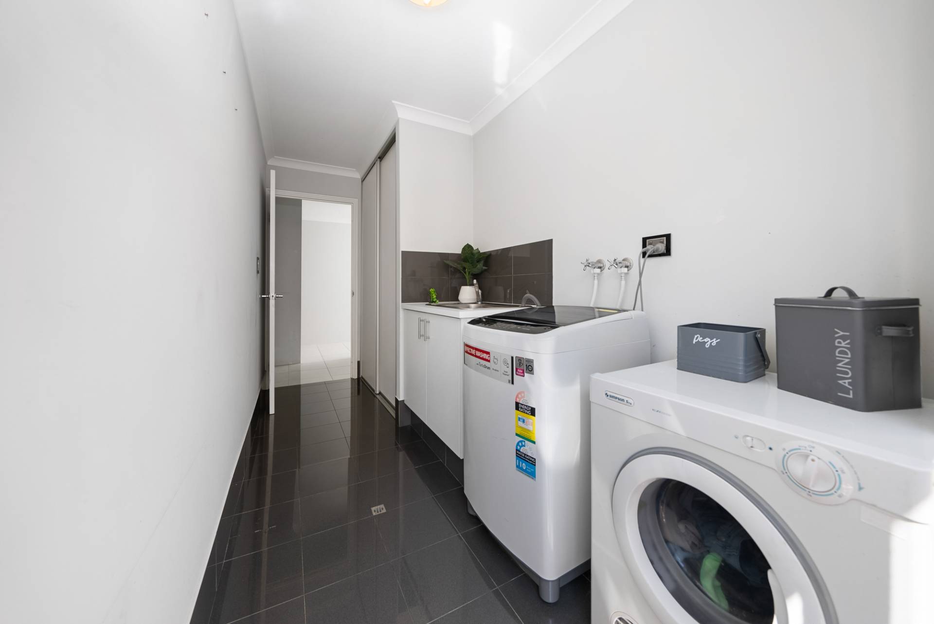 Double linen cupboard in the laundry