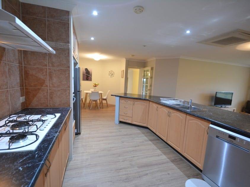 Huge open plan kitchen, dining and family lounge with slow burning wood stove that will keep you warm through the winter, plus reverse cycle air-conditioning or gas bayonets.