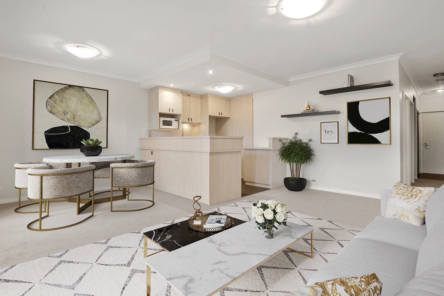 It has been freshly renovated with brand new carpets and painting throughout. More upgrades to the apartment include brand new matte black door handles, kitchen handles and mirrors.