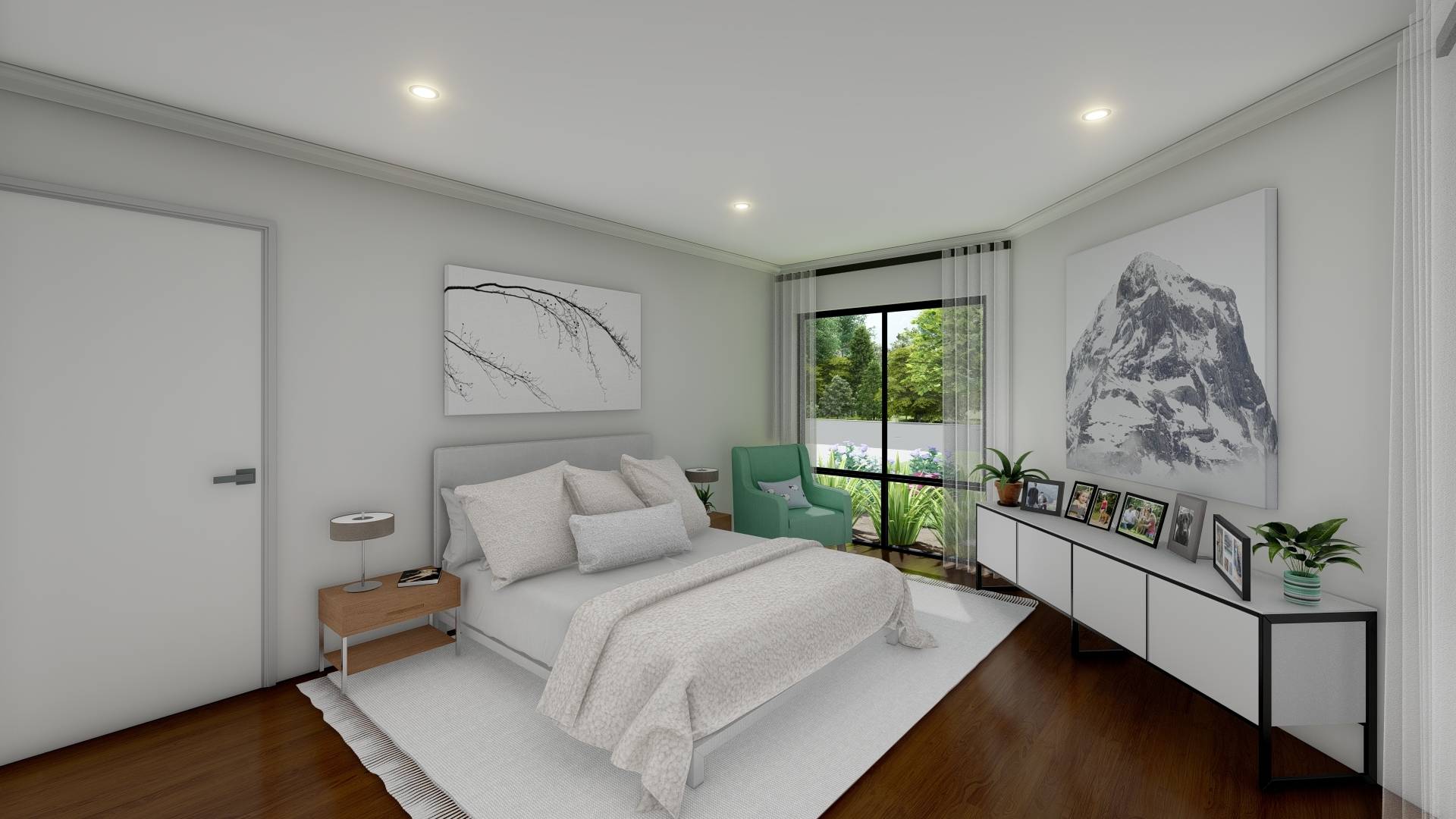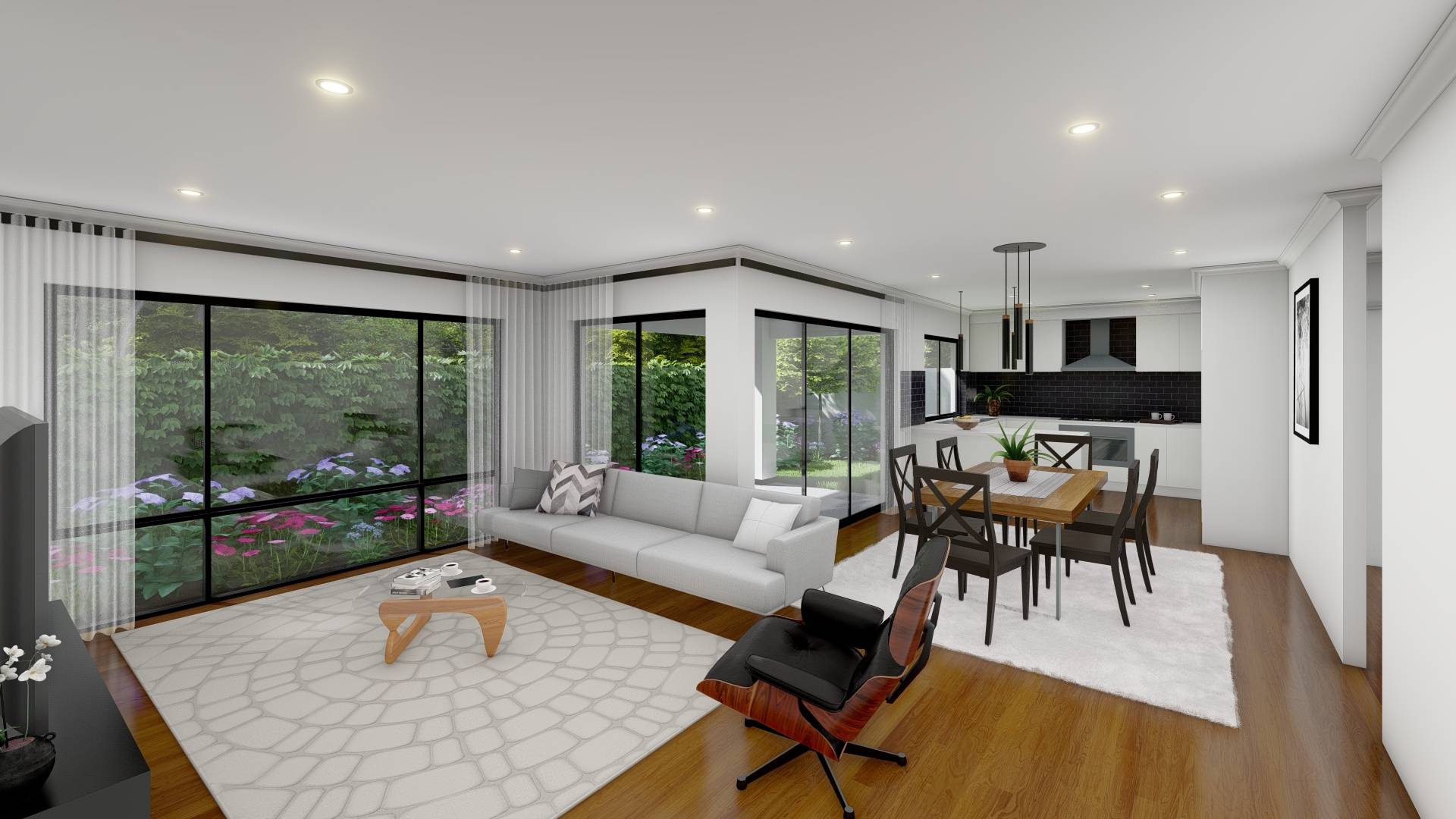 The sleek U-shaped kitchen offers 600mm stainless steel oven, hotplate and range hood, white cabinetry and a large breakfast bar with striking pendant lighting. You will love the convenient positioning of the two minor bedrooms near the bathroom, which has a contemporary white bath, spacious vanity and semi-frameless shower.