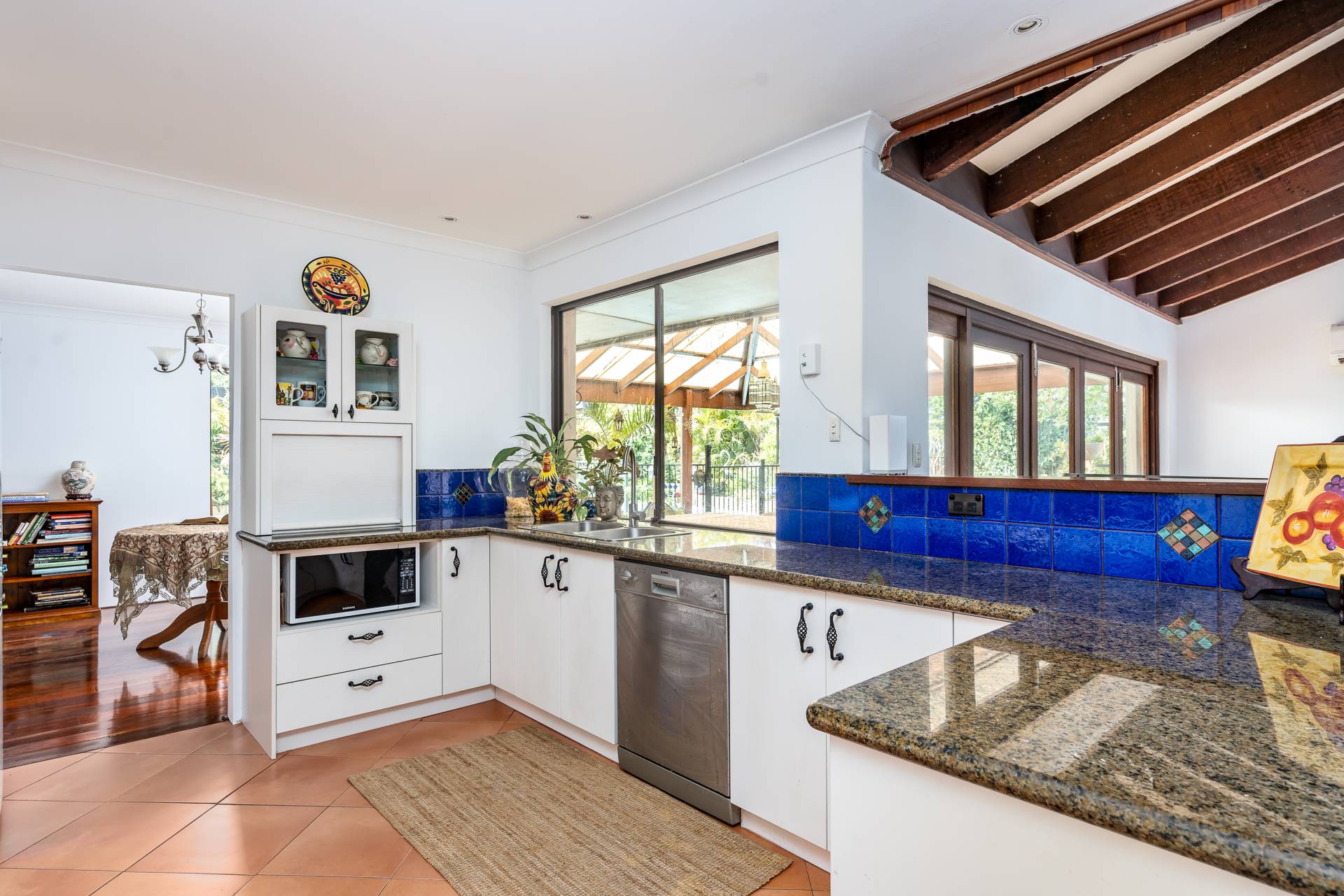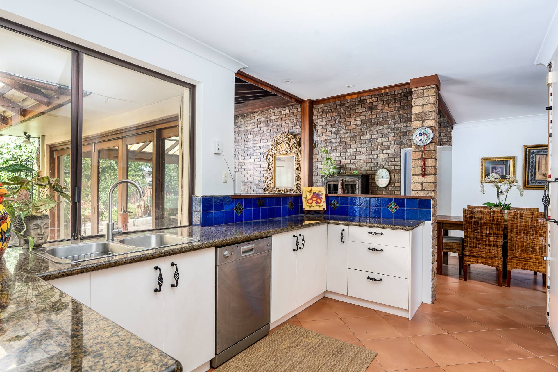 Featuring 2 separate and spacious living areas, one with beautiful wooden floors and attached dining space and the other complete with high wood beamed ceilings and access to the stunning outdoor area, the space and versatility in this home is truly impressive. Both living spaces seamlessly connect with the kitchen which makes up the true heart of this family home. Complete with stainless steel appliances, granite countertops and an abundance of bench and cupboard space, this is the perfect spot to bring the family together and to whip up your next culinary masterpiece for everyone to enjoy.