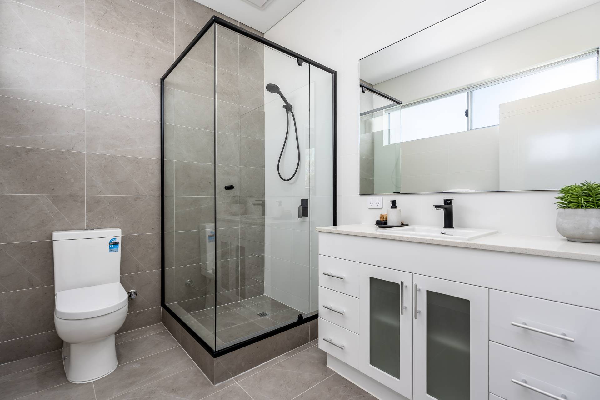 - Stunning bathrooms complete with stone benches, large feature tiles showers and floor to ceiling tile throughout