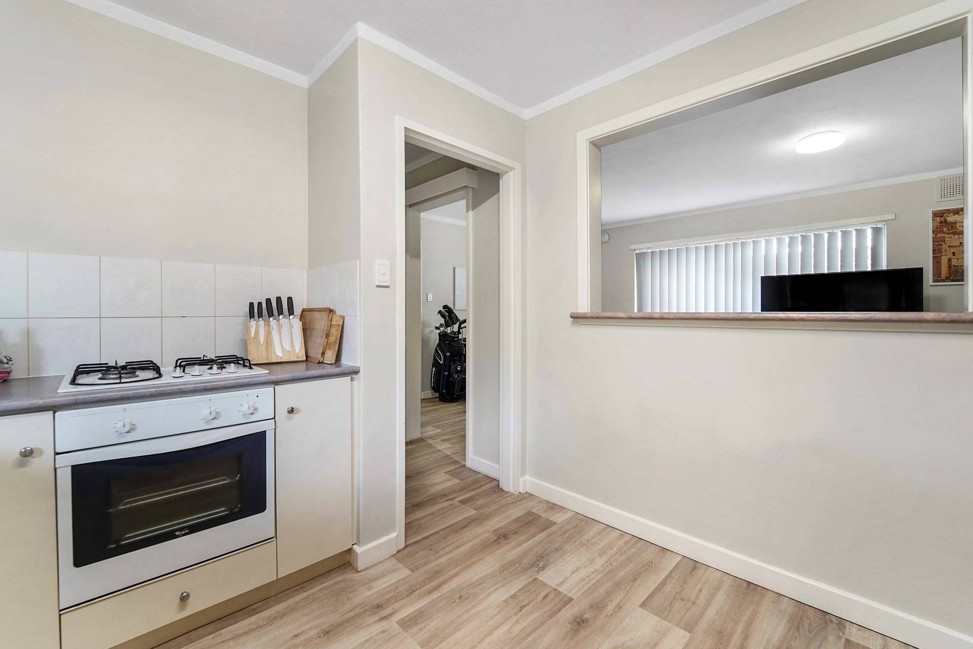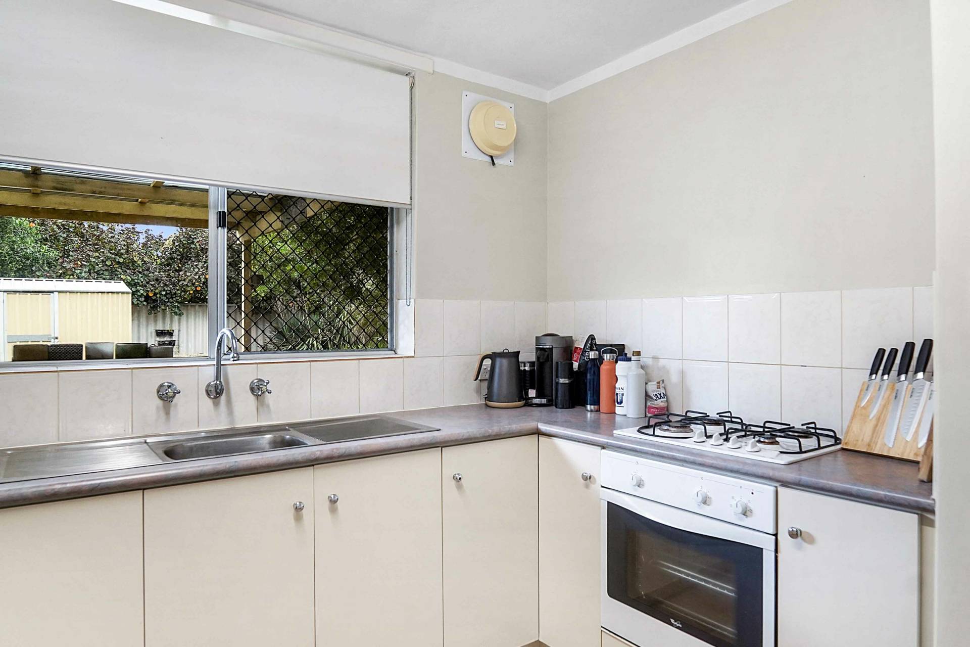 Cooking will be a breeze in the functional kitchen, complete with four-burner gas cooktop, oven, under-bench cabinetry and an outlook to the garden.