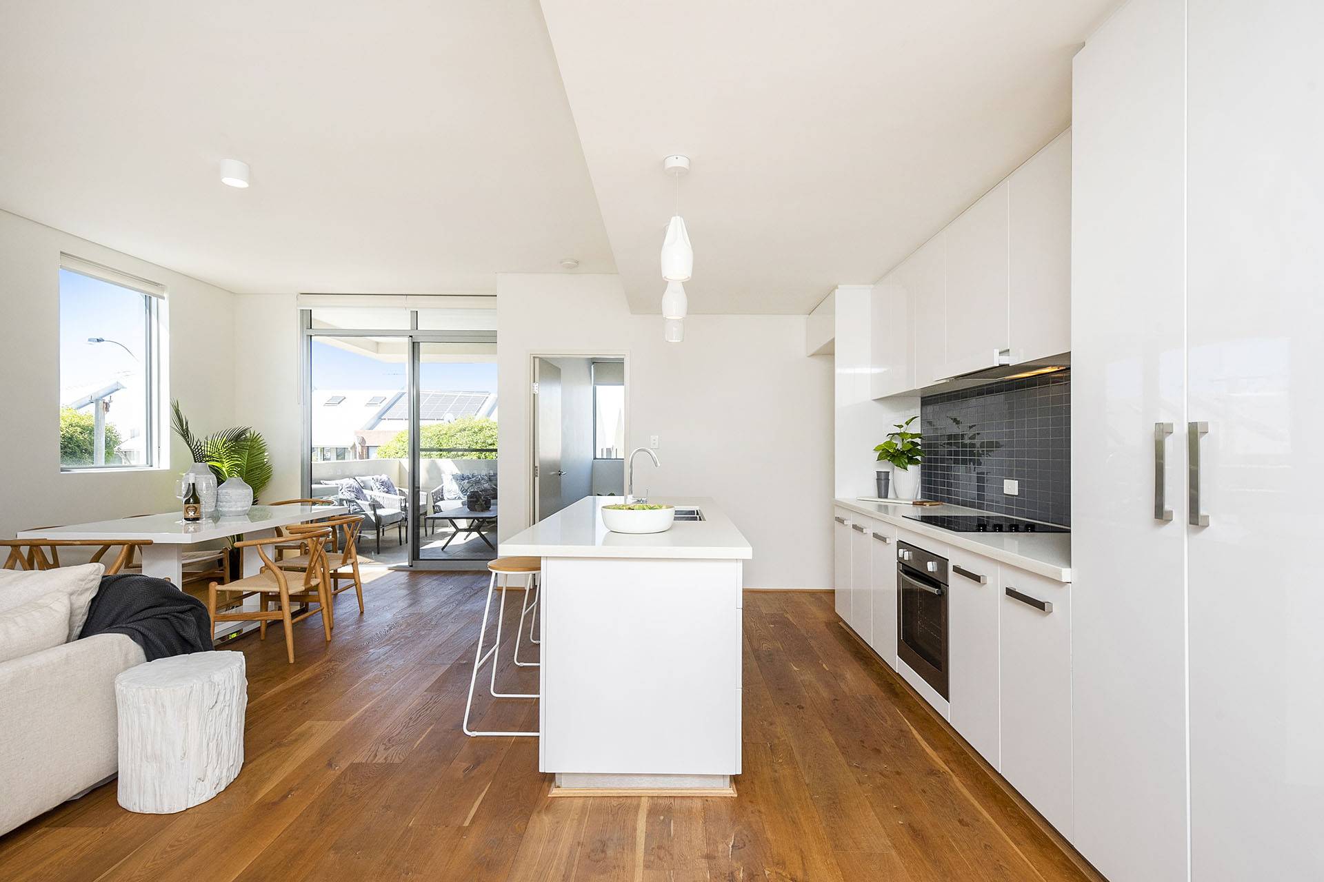 Elegantly appointed, the apartment features a spacious open plan living/dining room drenched in abundant light, gourmet kitchen featuring quality appliances, dishwasher, and island bench with breakfast bar.