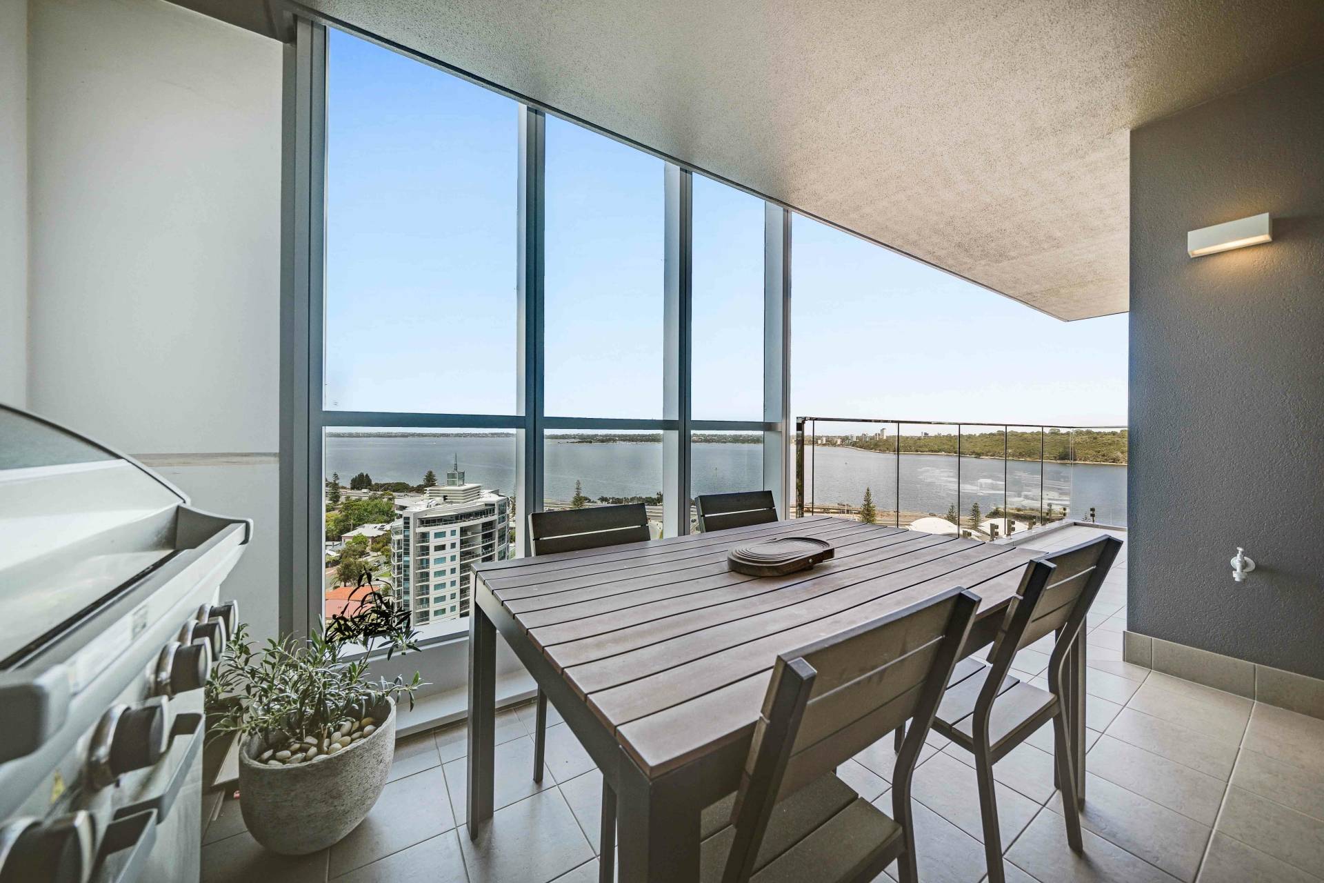 The 132sqm total area incorporates 78sqm internal living, two secure car bays, a storeroom and an expansive wraparound balcony, where you'll capture exquisite views of the Swan River, Perth City skyline and Kings Park and the South Perth streetscape below.