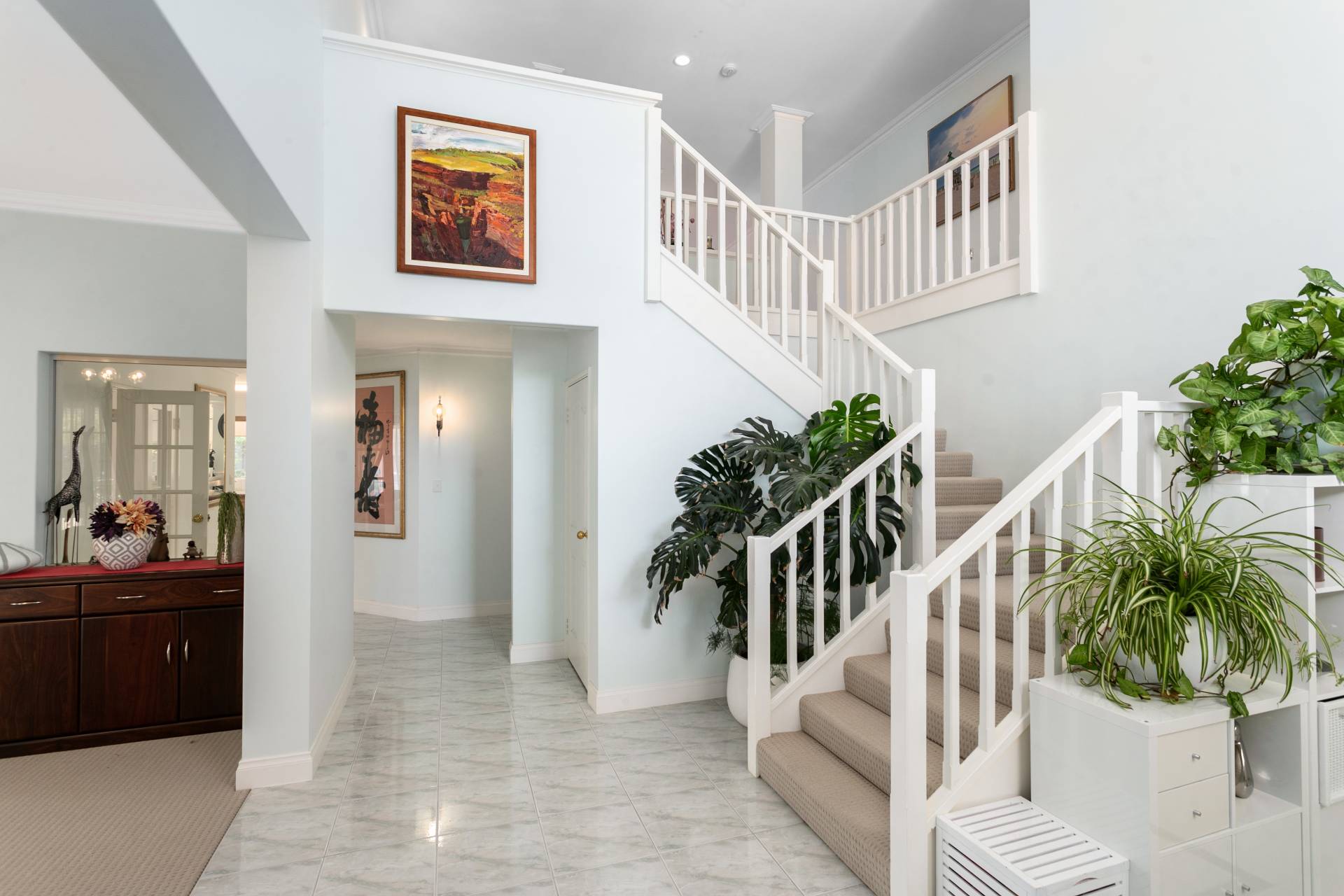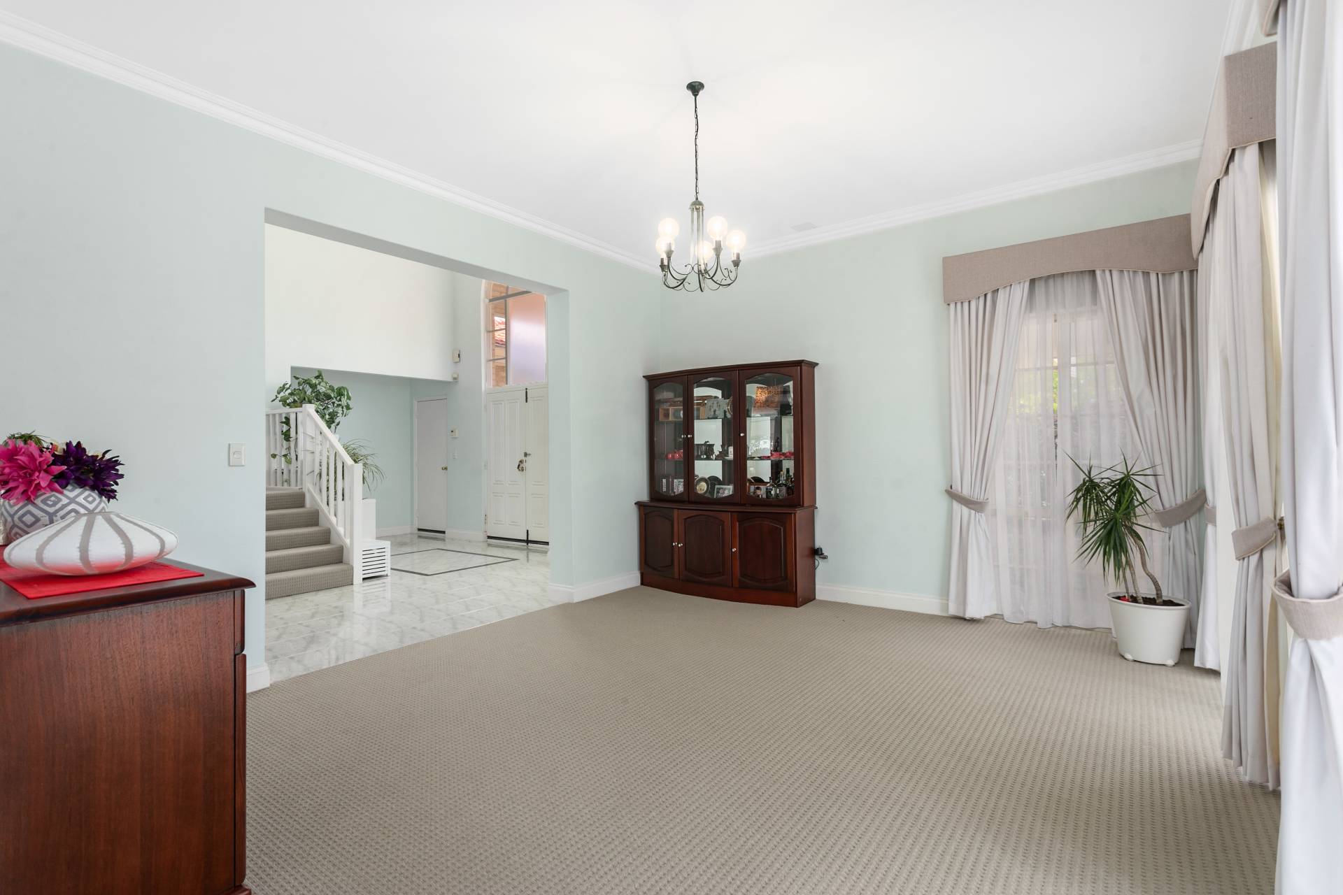 On the ground floor the grand light filled entry foyer with double height void and staircase welcomes you to this practical and homely freshly painted and carpeted residence featuring lounge and dining/music rooms, huge kitchen with solid timber doors, massive open plan family/meals and media living area, high ceilings, guest bedroom with ensuite and study or 6th bedroom.
