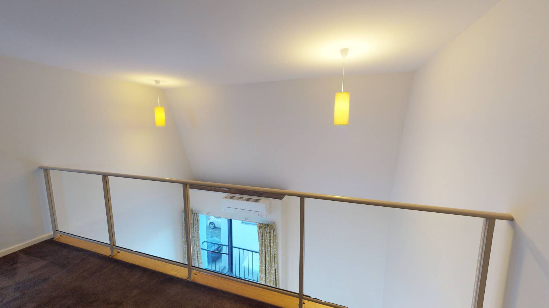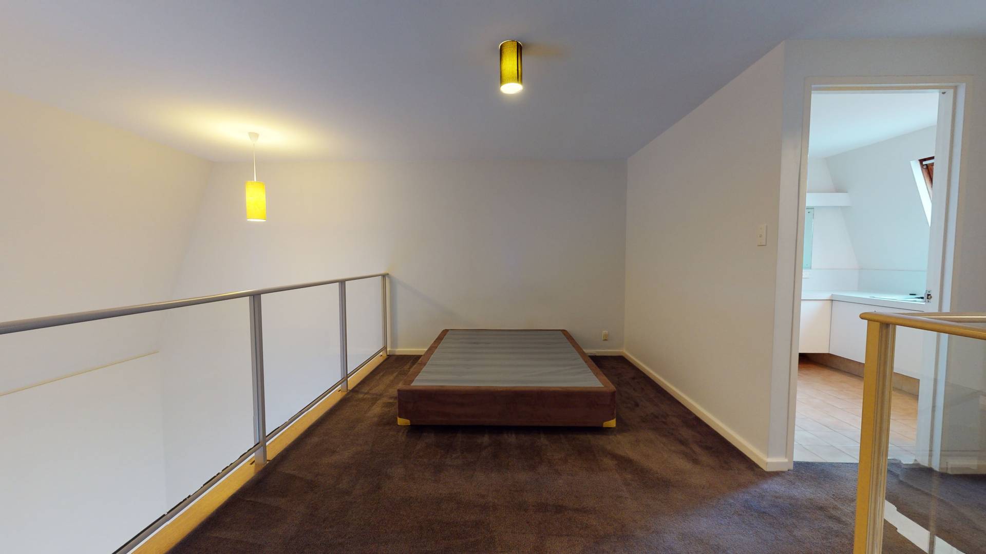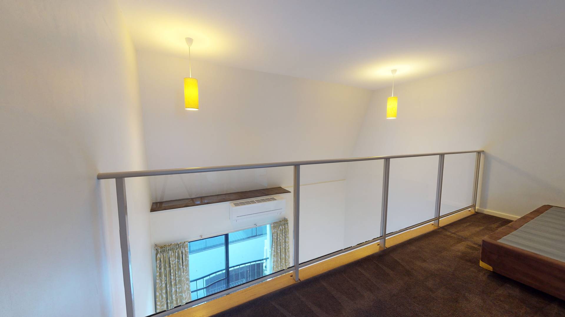 • Large master bedroom with glass balustrade overlooking living area