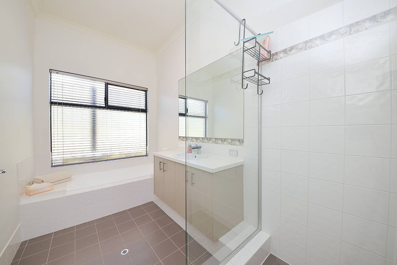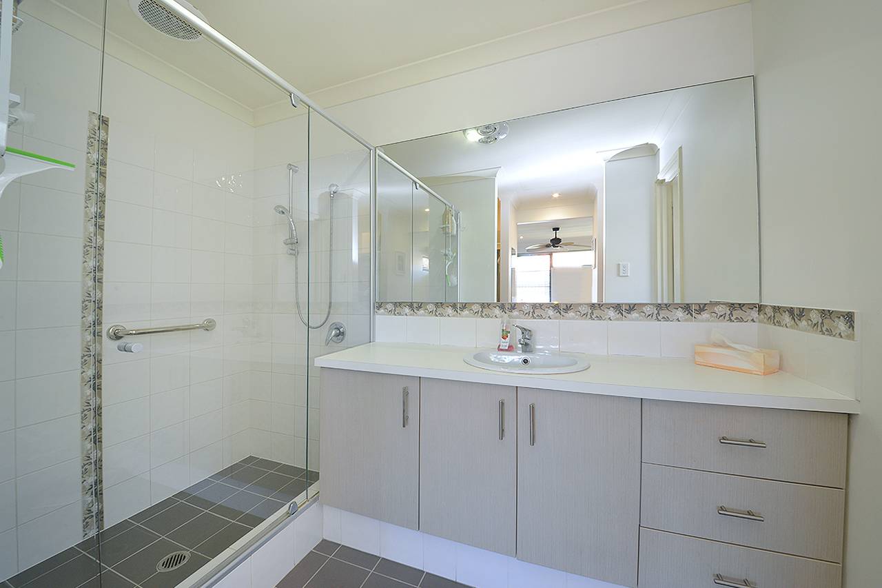 Ensuite with extra length shower (with screen), full length vanity and mirror, heat lamp and separate WC