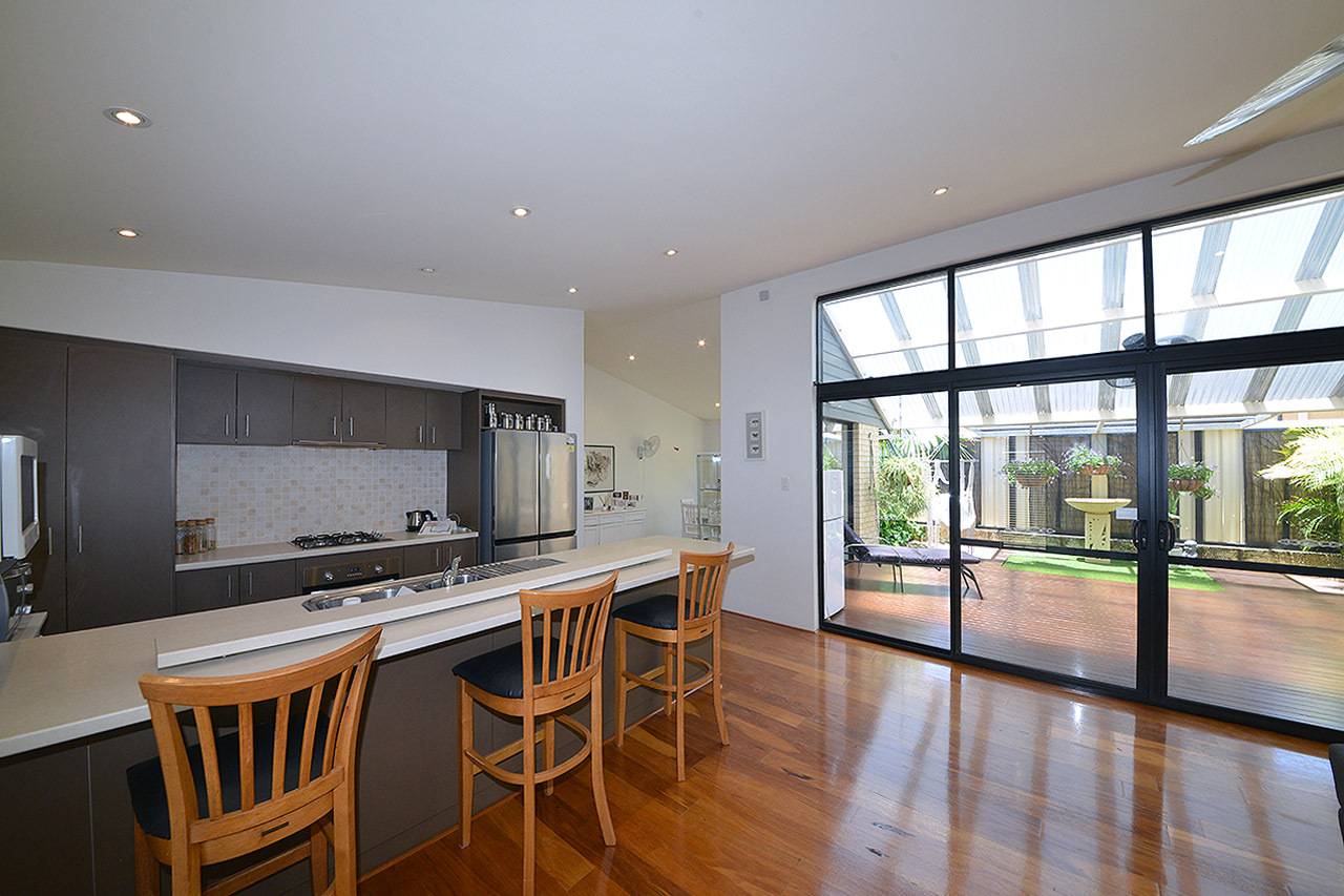 Central kitchen with underbench oven, 4 burner gas cooktop, rangehood, dishwasher, stylish tiled splashbacks, feature overhead cupboards and all with ample bench / cupboard space