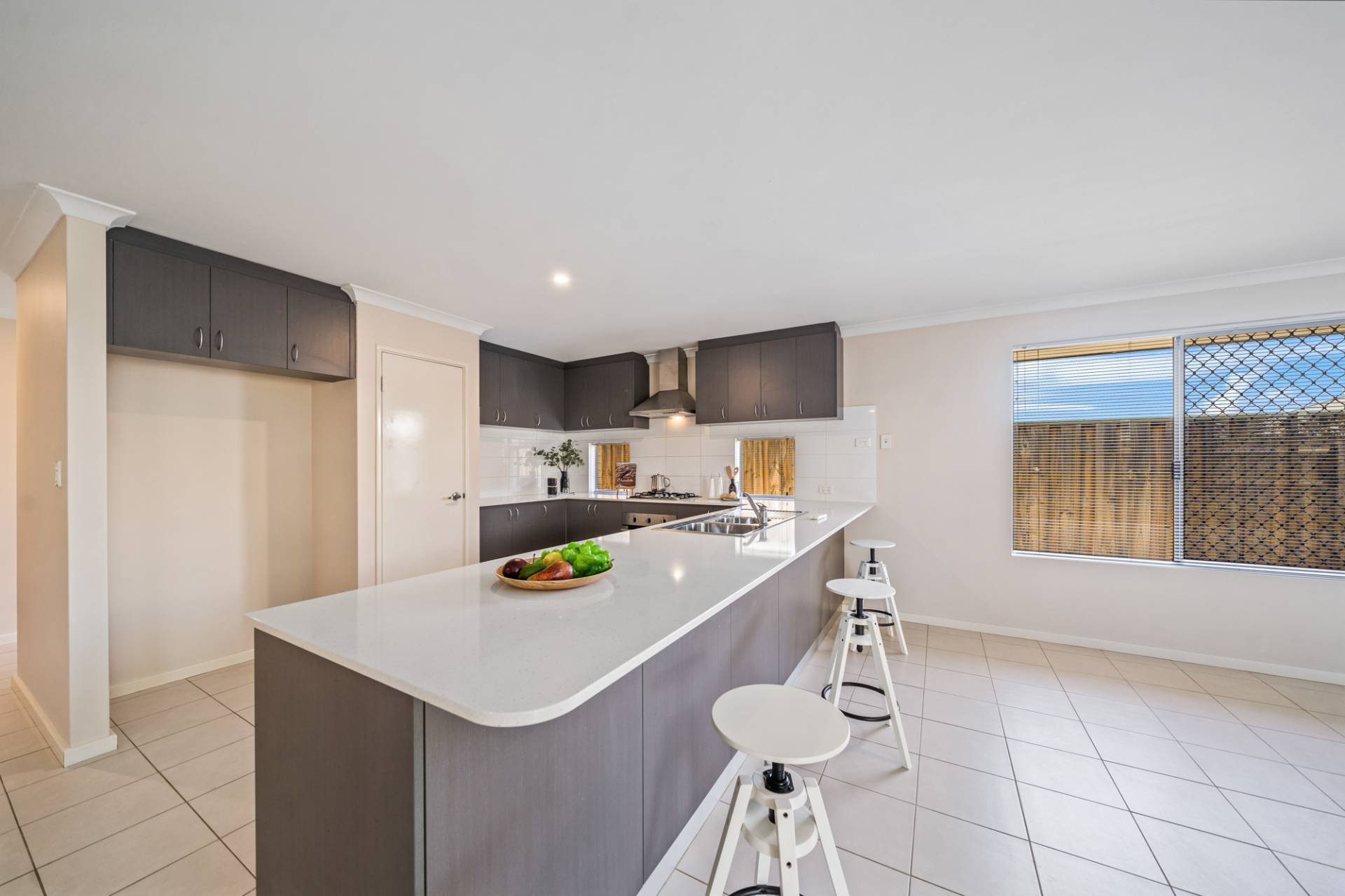 Communal areas have been beautifully tiled and freshly painted, so you can step into a place which truly feels new. The spacious open-plan kitchen/living/dining room area has been accented with a long stonetop breakfast bar and plenty of cupboard storage to make mornings easy, and there’s no need to worry about waking up early to water the gardens – the healthy waterwise plants and set-and-forget reticulation mean you can truly focus on family time. There’s also a covered alfresco and double garage set to the rear making it easy to get out and go each day.
