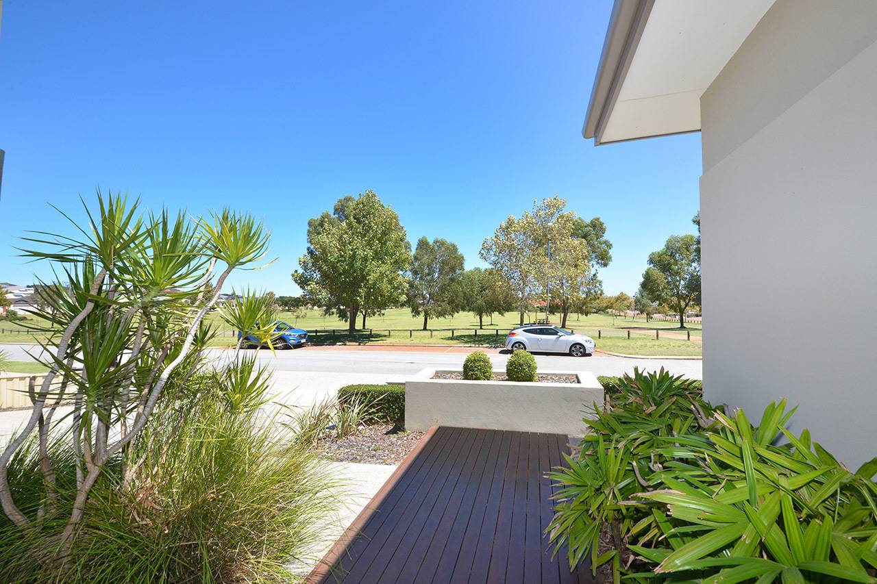 Stunning street appeal with feature front wall, synthetic easy care lawn and poured aggregate paving, all overlooking Chesterfield Park