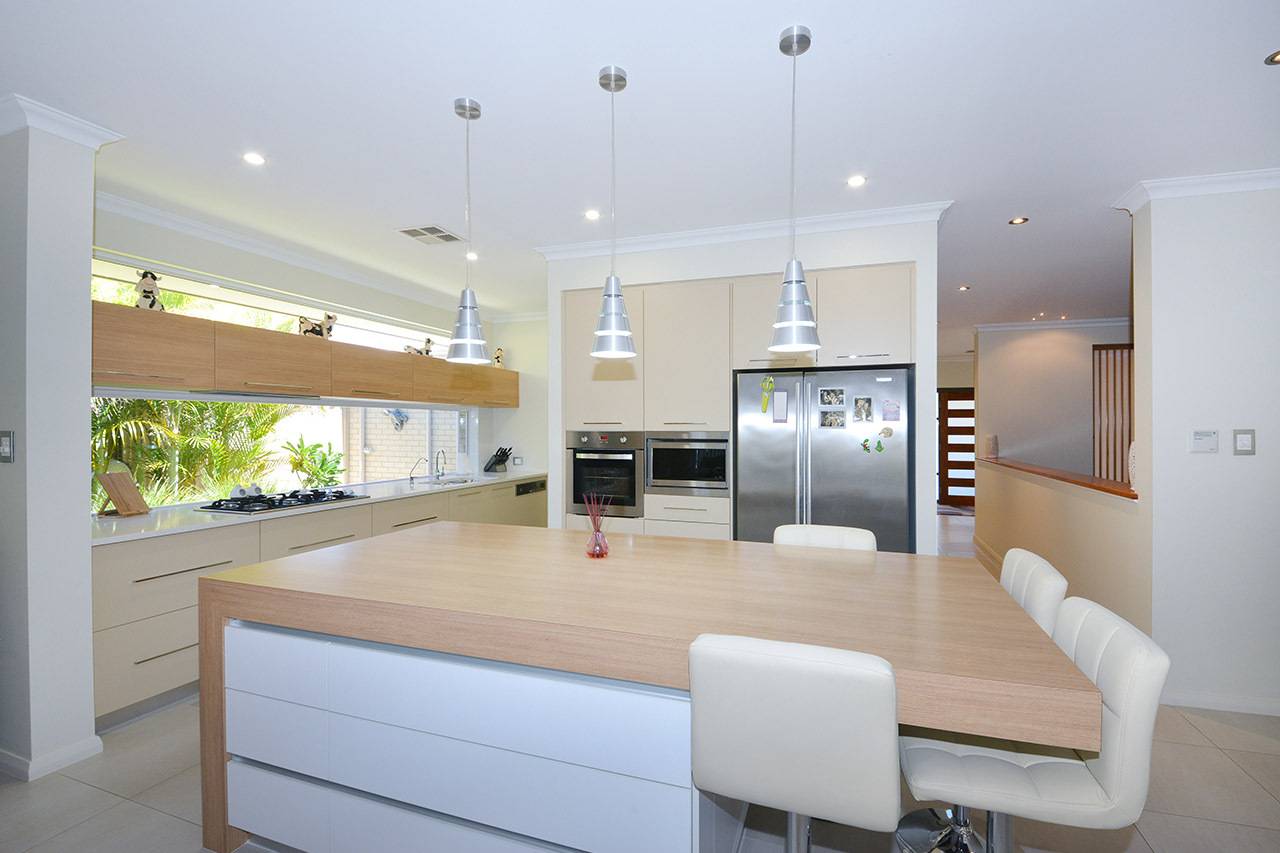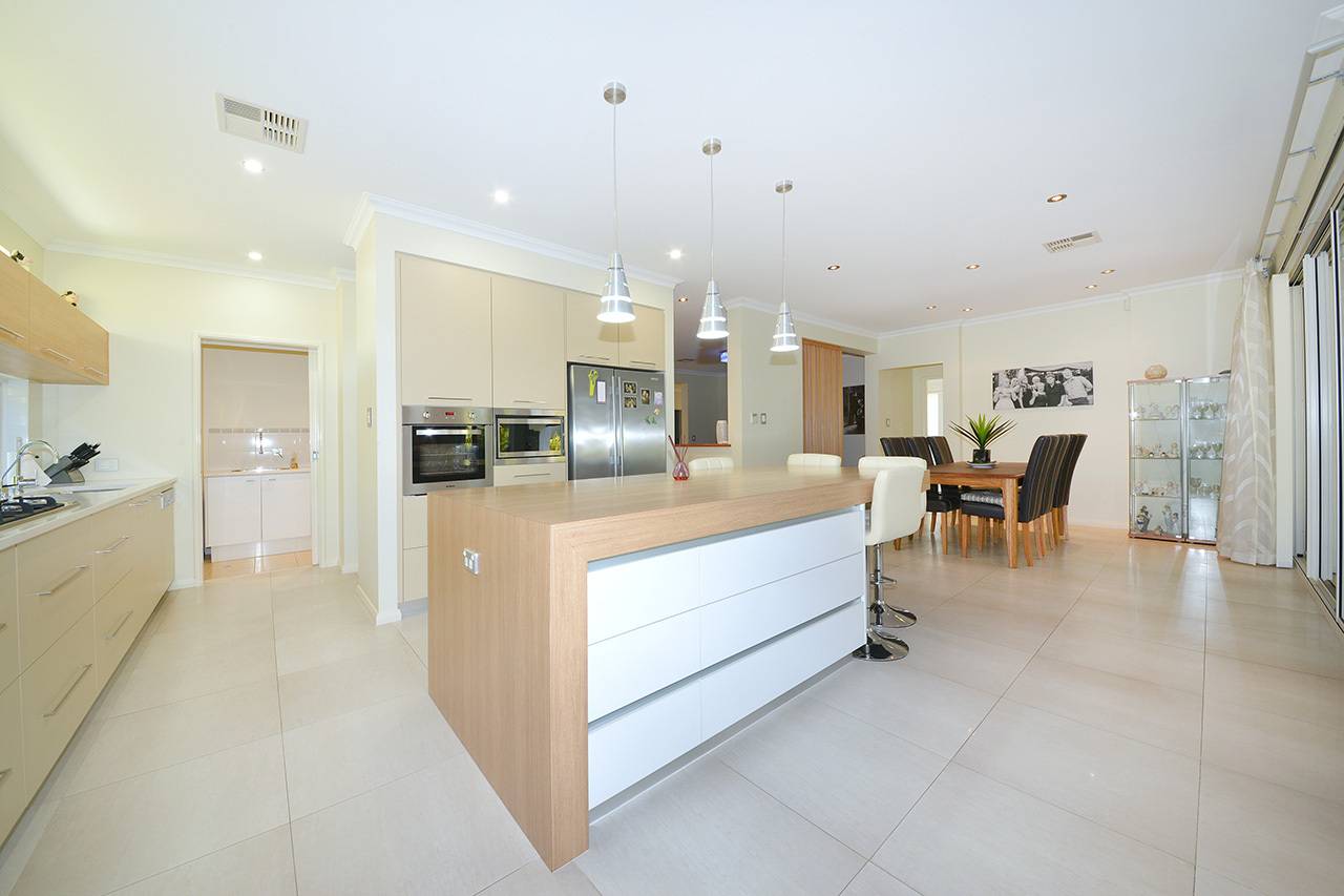 First class kitchen with central island breakfast bench with inbuilt cupboards, plus full length stone benchtop, extensive cabinetry, stylish splashbacks, quality appliances including integrated microwave oven, 5 burner gas cooktop, rangehood, dishwasher, filtered water tap, fridge / freezer recess, massive walk in pantry and all finished with quality fixtures and fittings
