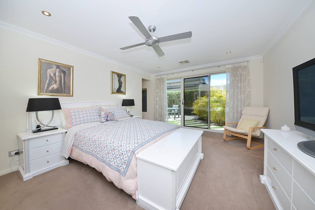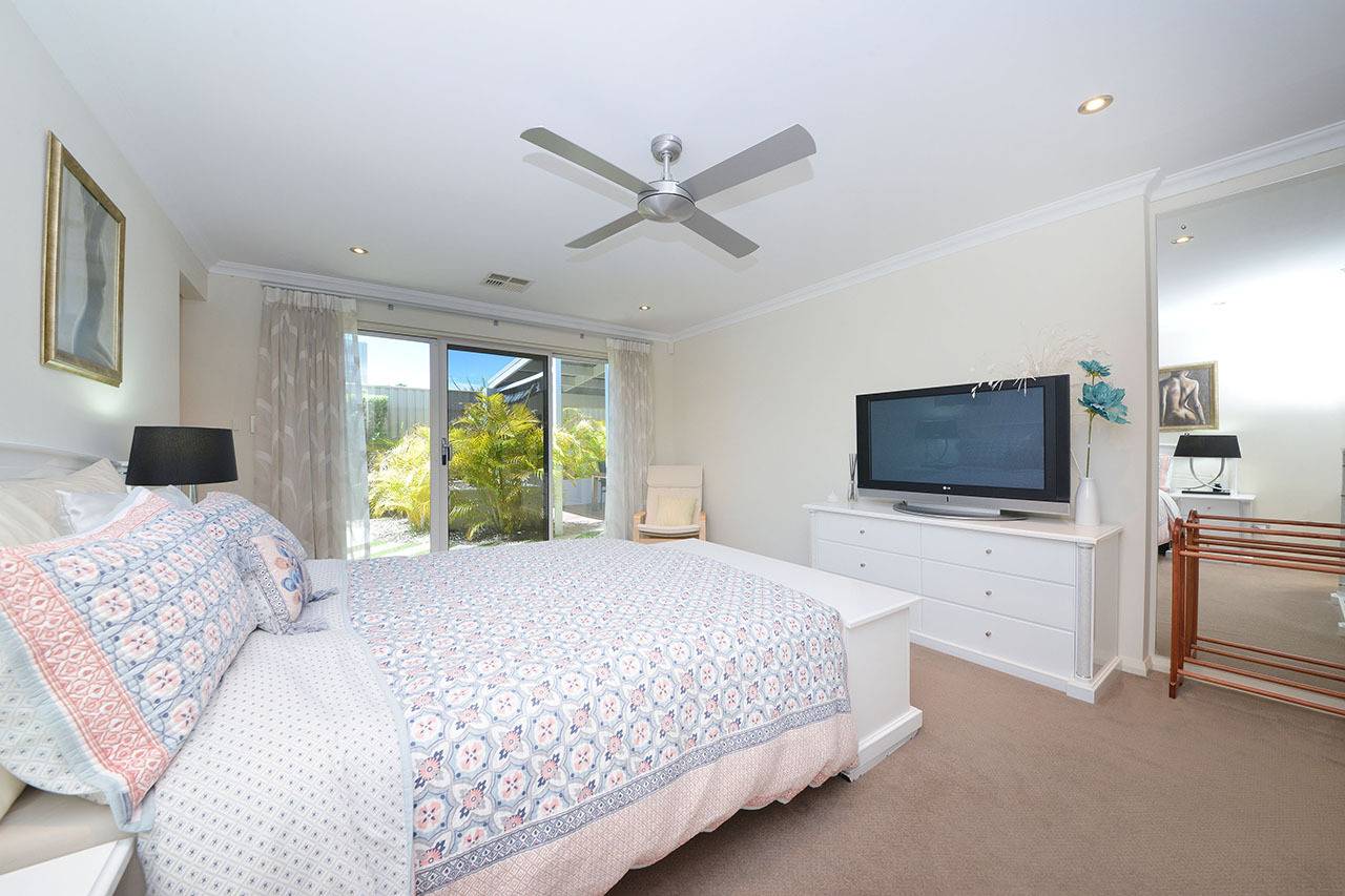 Spacious master suite located to the rear of the home with extra length walk in wardrobe with inbuilt shelving, TV point, ceiling fan and sliding door access to outdoors