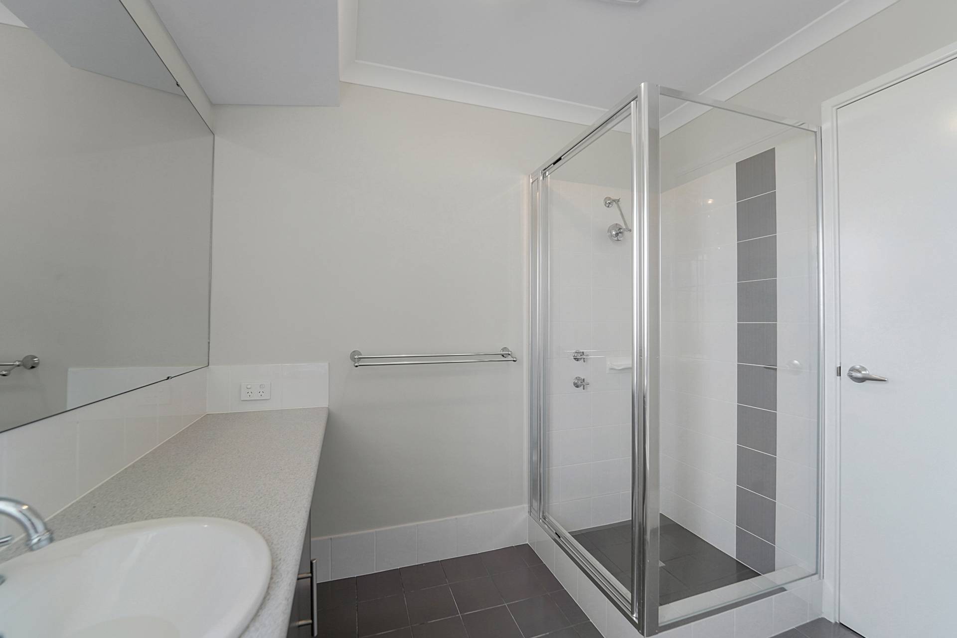 Daily life is made easy with a stylish, open plan kitchen and dining area, ready for use with a dual sink, dishwasher recess, under-bench oven and 5-burner gas cooktop. The substantial living room adjacent is fitted with LED downlights, and close enough to see from the kitchen while you’re cooking up a storm for family and friends. From here, there is a rear alfresco under the main roof, with access to a private gated area for residents of the estate to enjoy.