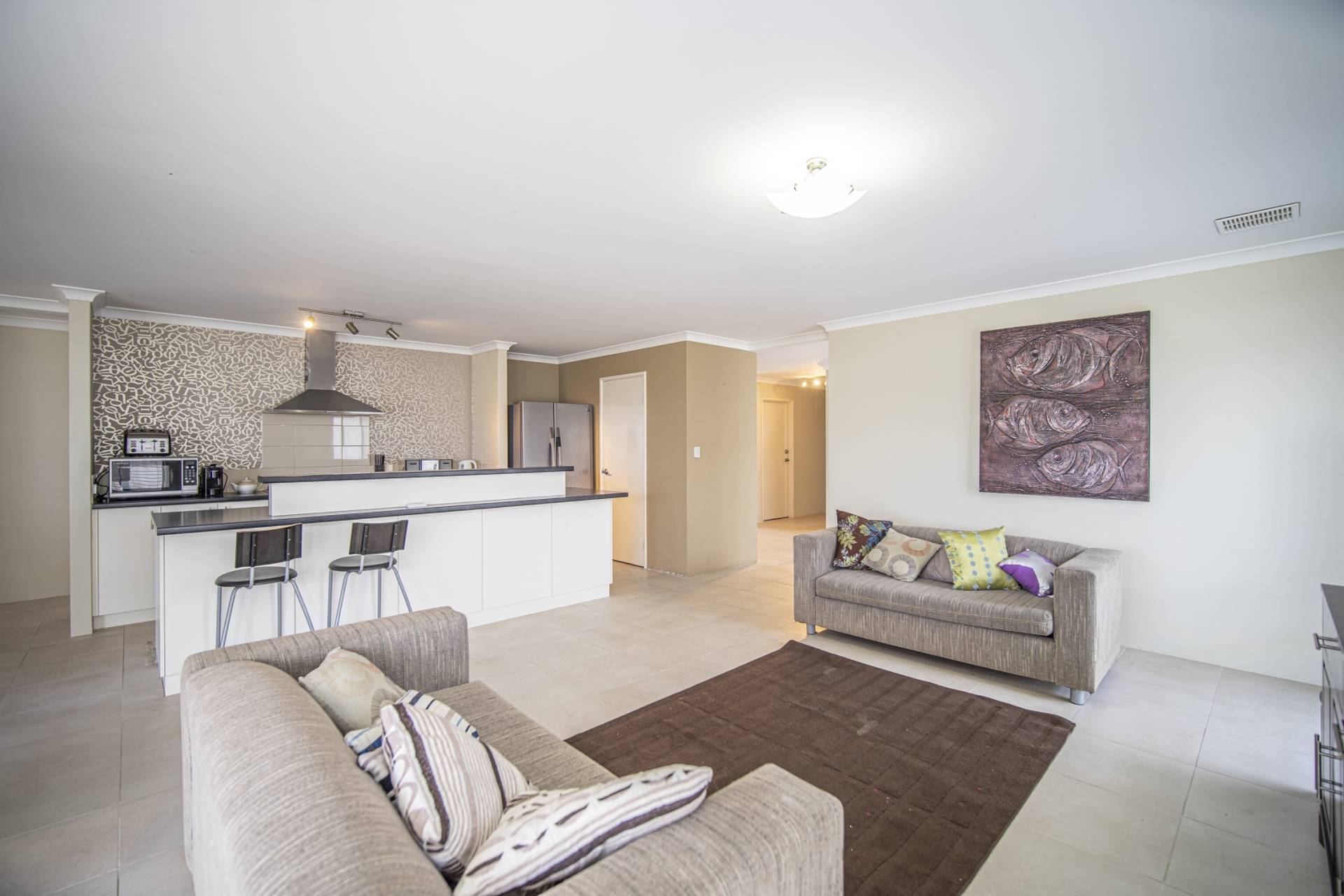 • Open-plan kitchen, dining & living with sliding door access to patio