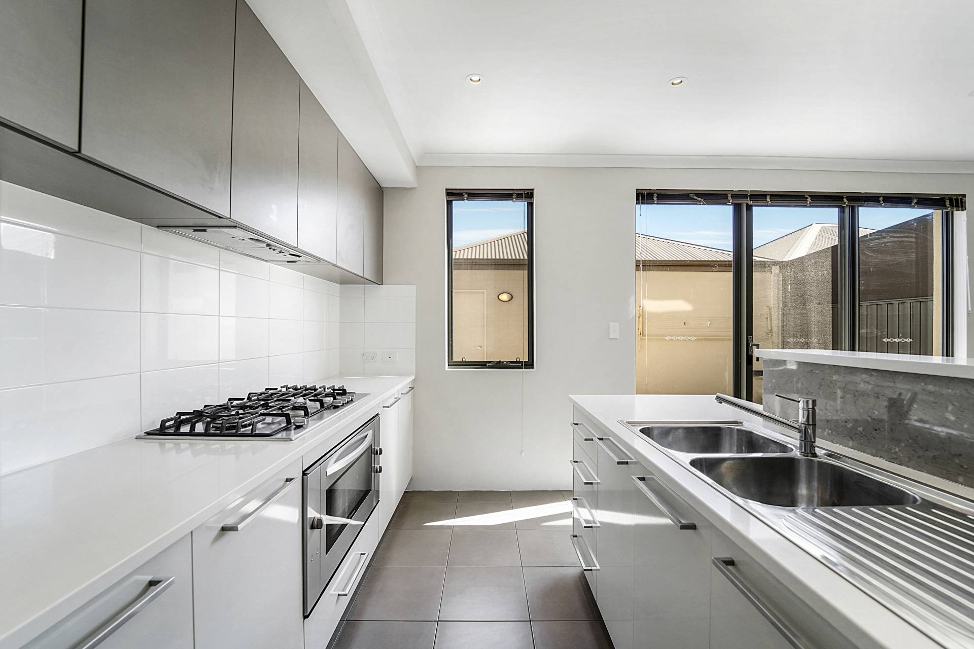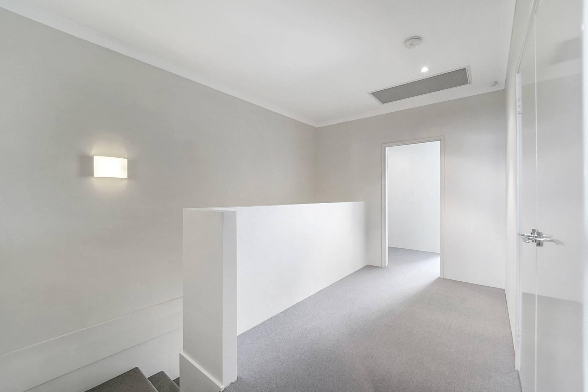 Downstairs, the light-filled kitchen/living/dining area makes the most of open planning and direct access to the front courtyard filled with fragrant rosemary. Inside, the galley kitchen comprises an island bench with a dual sink and dishwasher, 900mm cooking appliances and generous cabinets for a range of storage solutions. At the rear of the home is a second courtyard which is fully enclosed, perfect for letting children and pets play safely or a canvas to design your dream alfresco area. There’s also a secure double garage which backs onto a quiet street for easy access.