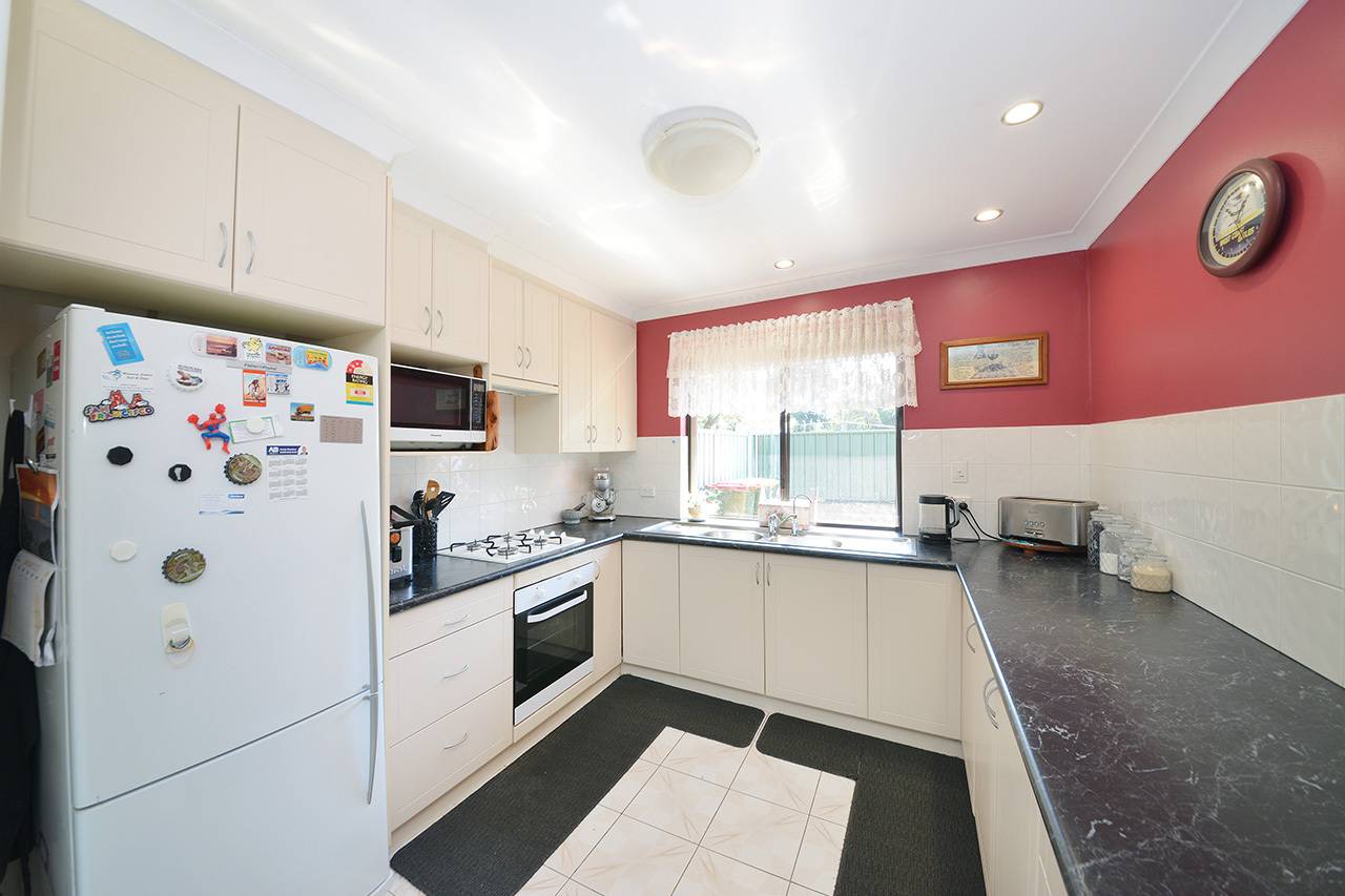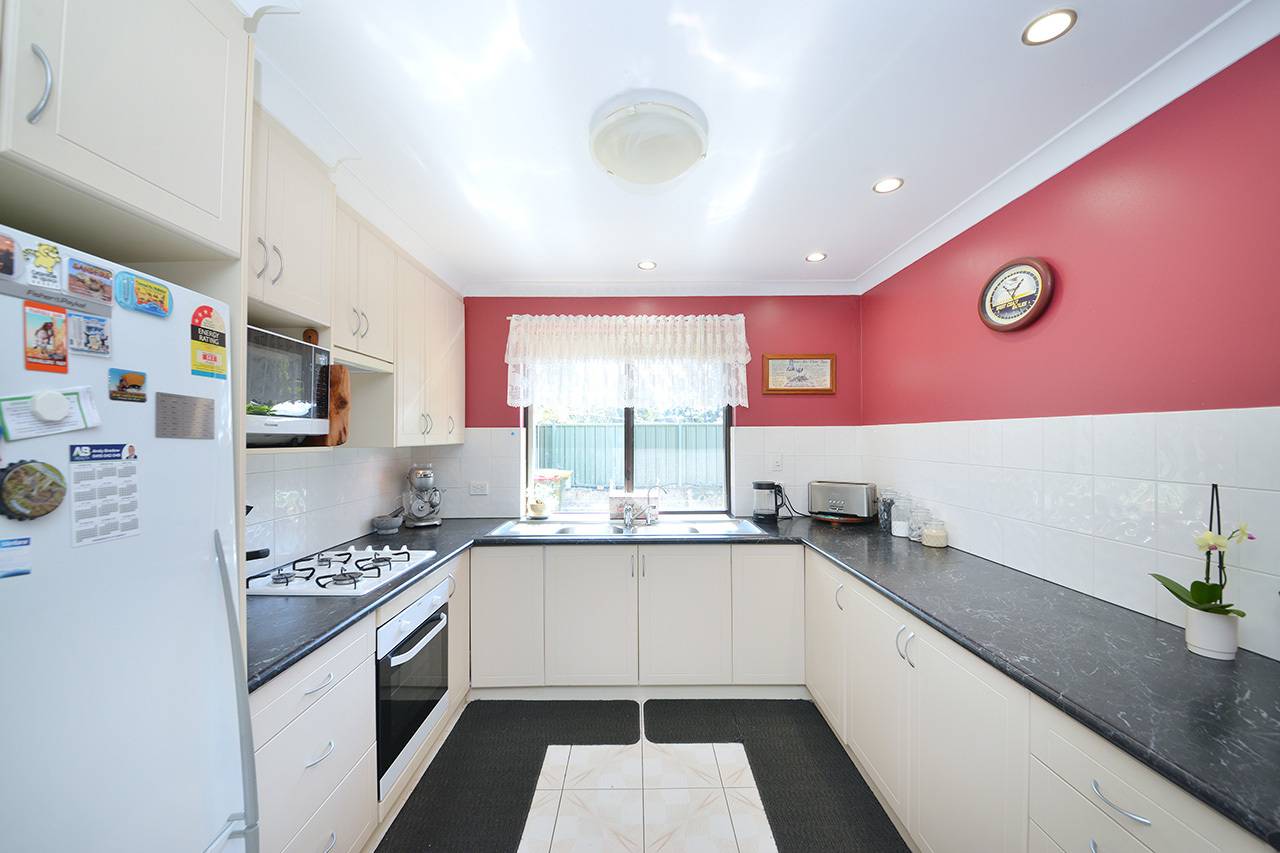 Good size kitchen with electric wall oven, 4 burner gas hotplates, microwave and fridge recess, tiled splashbacks and all with ample bench / cupboard space