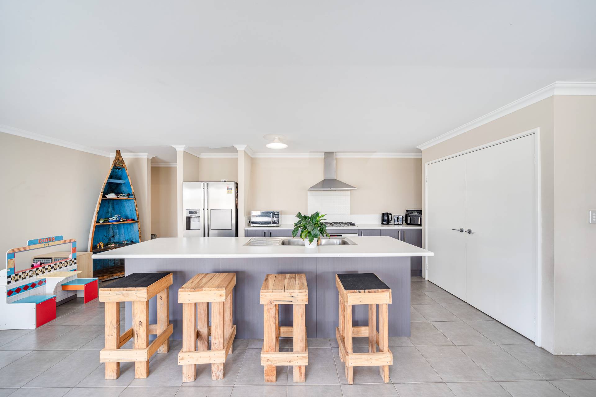 Leave the city’s hustle behind and venture an hour south of Perth to this coastal paradise. This four-bedroom, two-bathroom home in Madora Bay is located within the pristine Peel Region. Many relocate to the area for its nature, cuisine, carefree lifestyle and waterways, including the expansive Peel-Harvey Estuary.