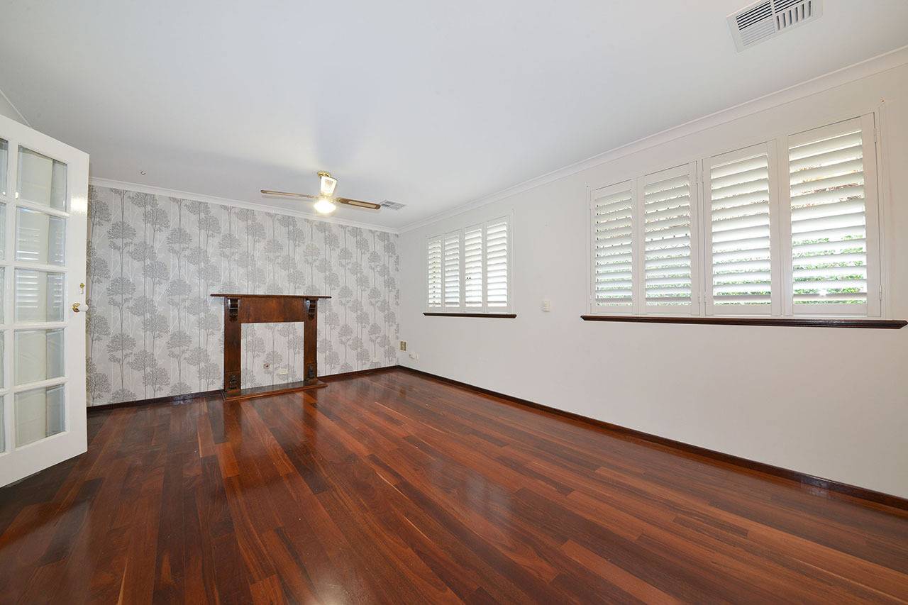 * Spacious master bedroom with feature floorcovering, plantation blinds, ceiling fan and an extra-large walk in robe