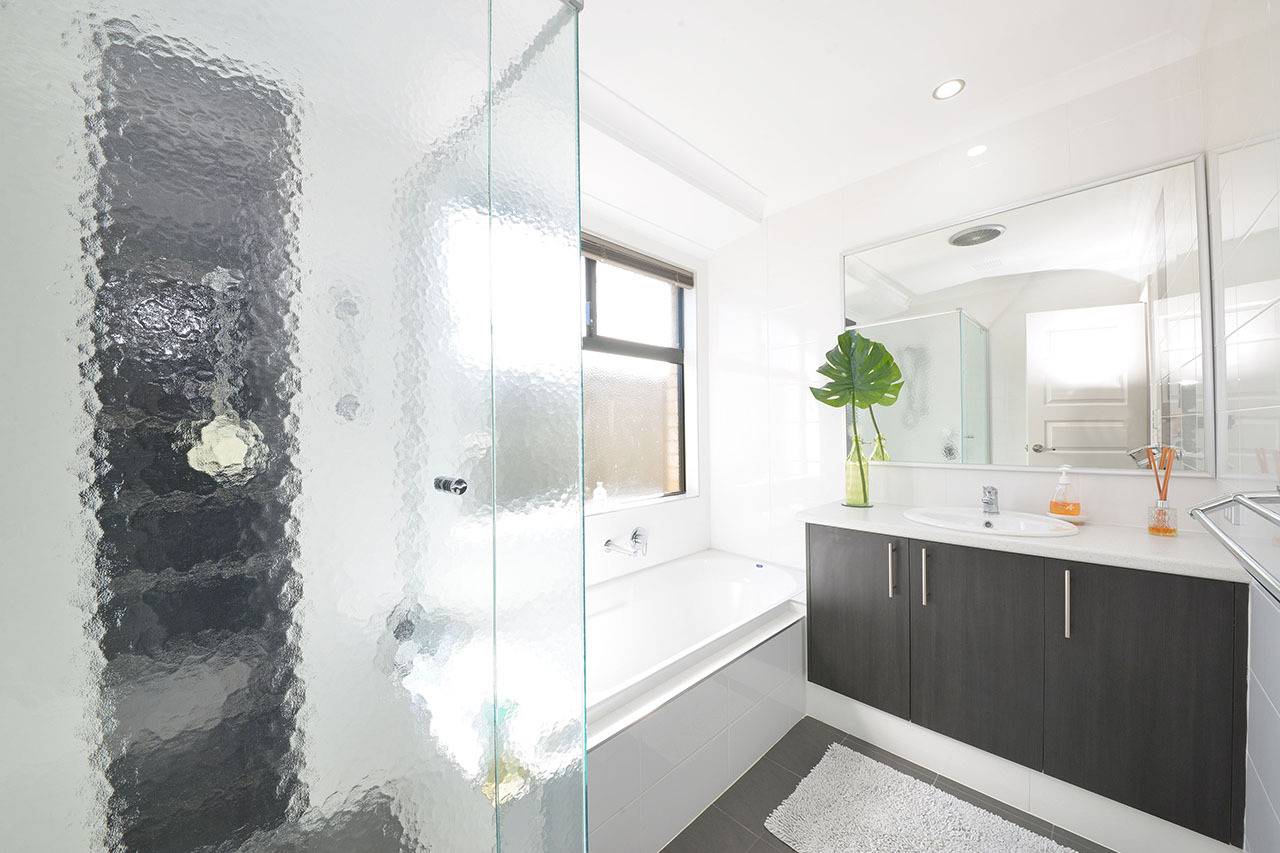 Modern 2nd bathroom with full height tiling, bath and shower (with screen)