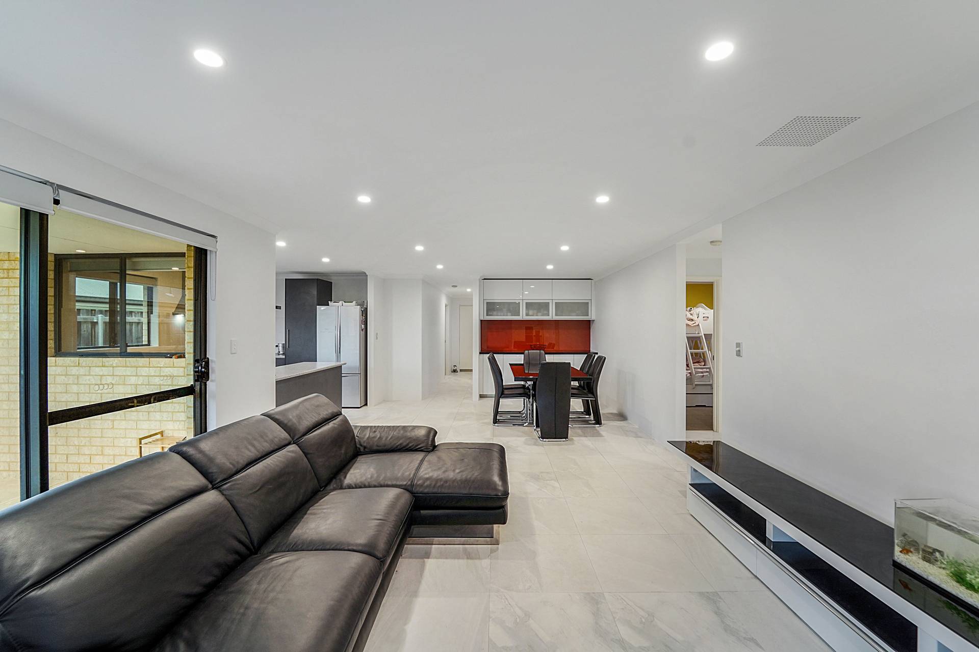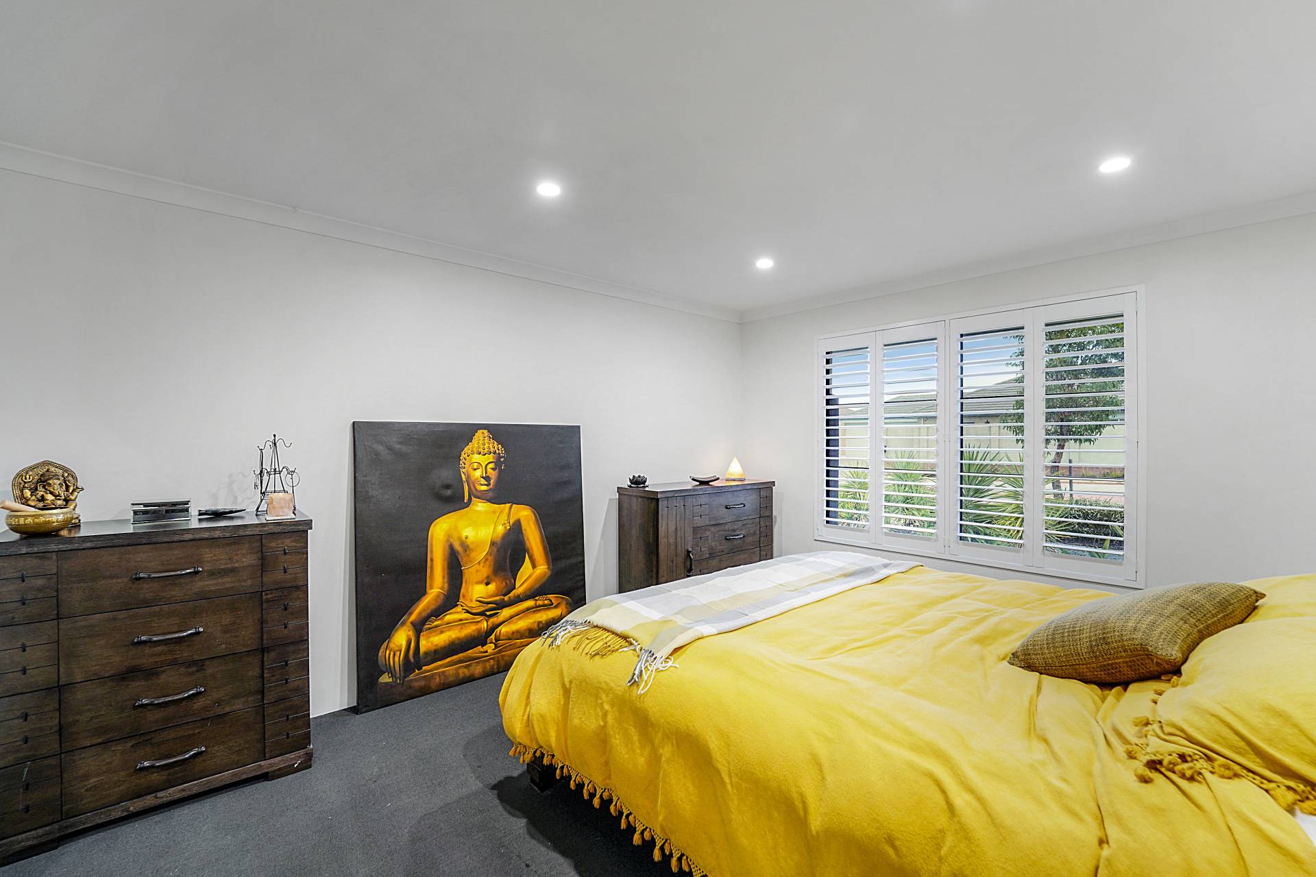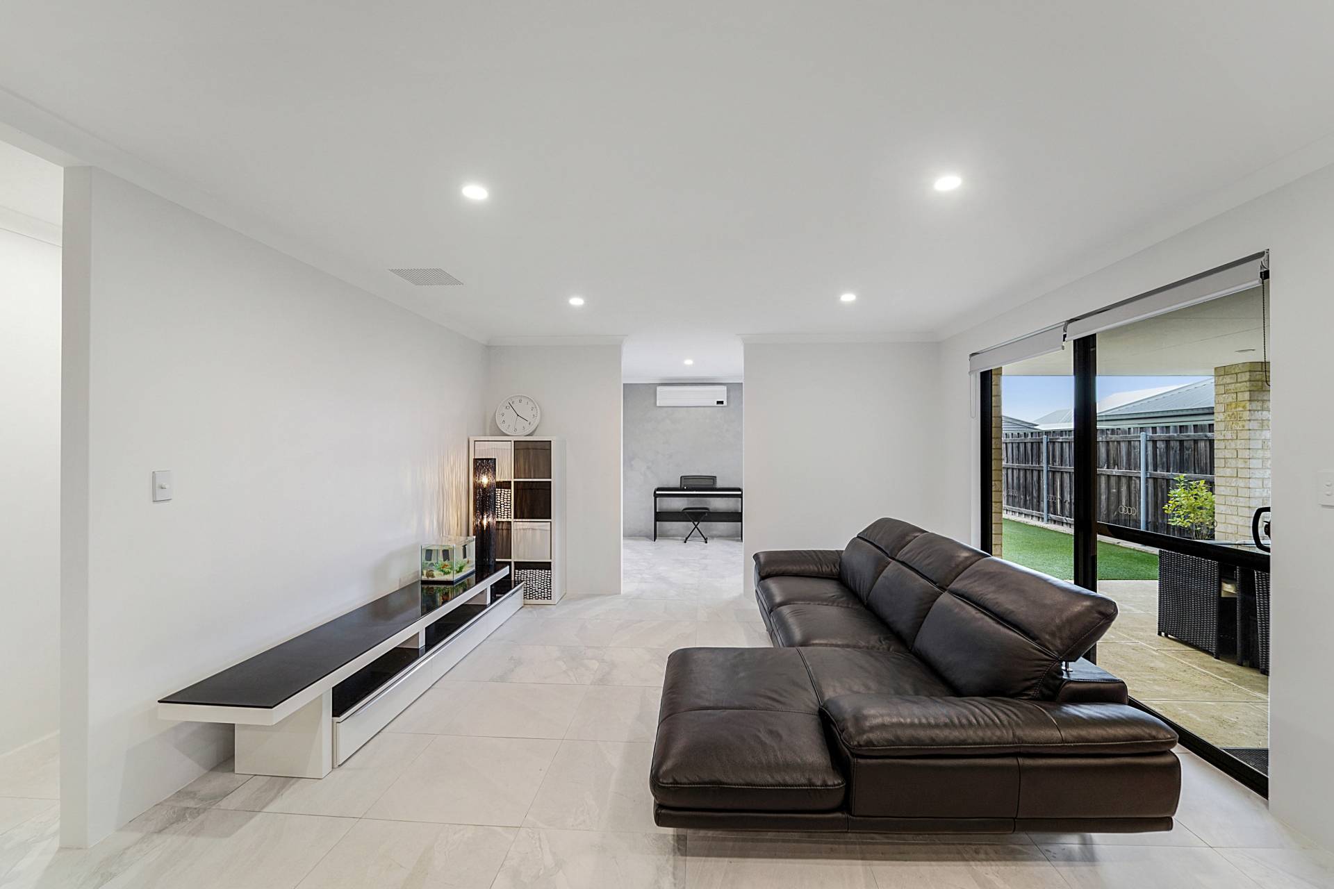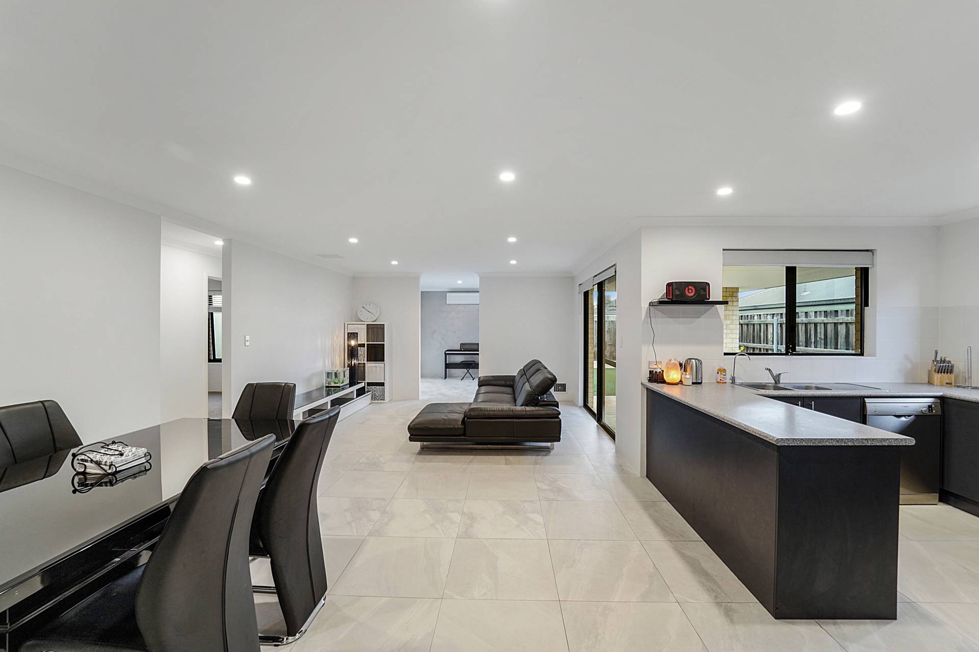 The expansive open-plan living and dining area is a beautiful space where family and friends come together. Double sliding doors open up to the paved alfresco area, where you'll appreciate the easy-care yard with artificial lawn.