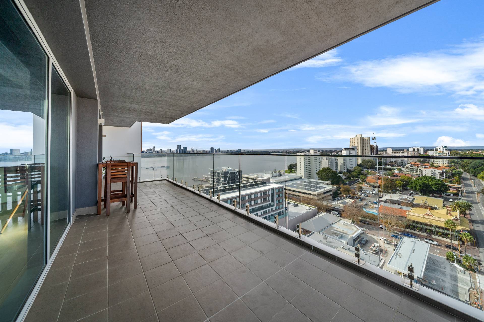 The 154sqm total area incorporates 83sqm internal living, two secure car bays, a storeroom and an expansive 42sqm wraparound balcony, where you'll capture exquisite views of the Swan River, Perth City skyline, Melville water and the South Perth streetscape below.
