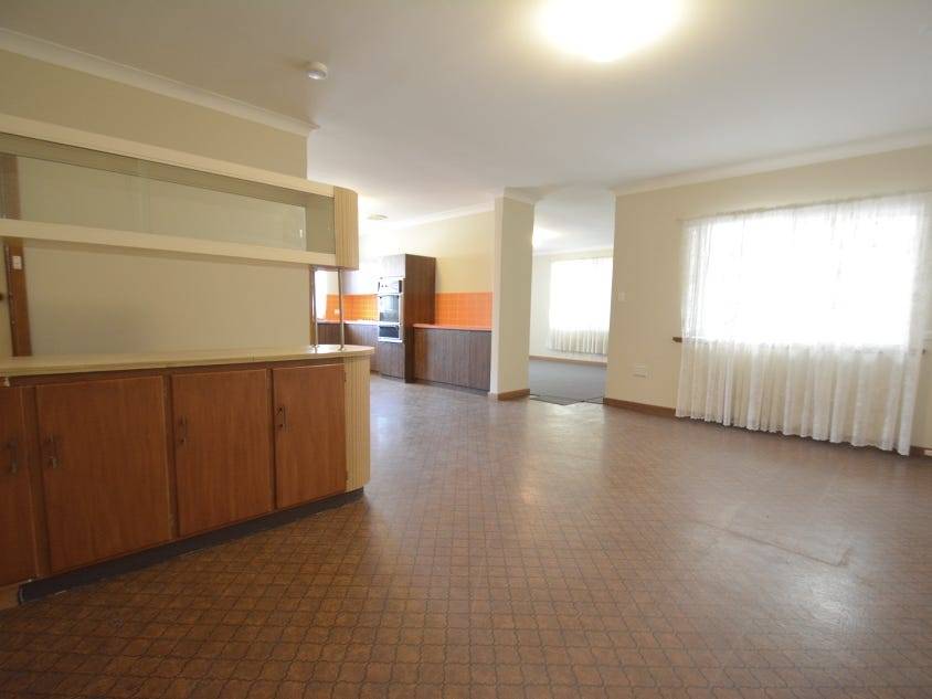 Spacious carpeted lounge room and huge open plan kitchen and family area. Due to the shape and size of the kitchen it would be ideal to have a family dining table in it.