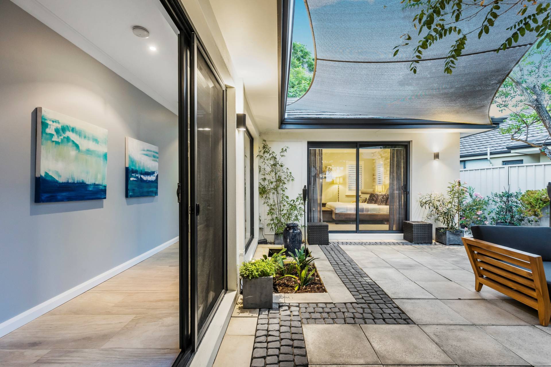 Incredibly private from the street, boasting elevated treetop inland views toward the city this delightful home offers an idyllic peaceful lifestyle with the ambience of down south and the convenience of all Perth’s amenities.