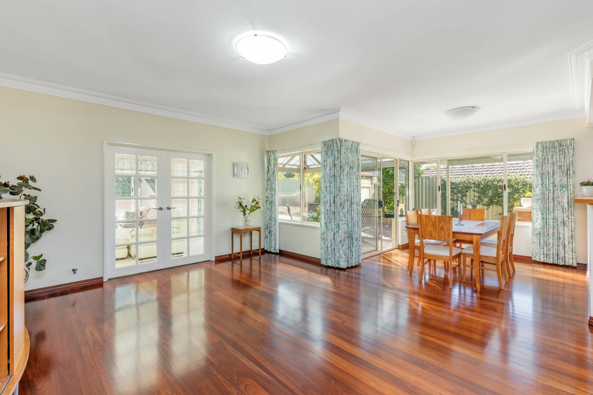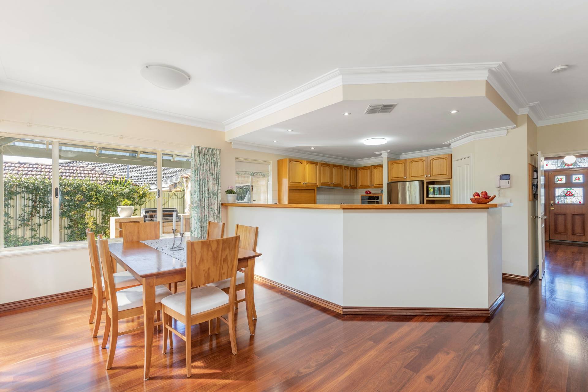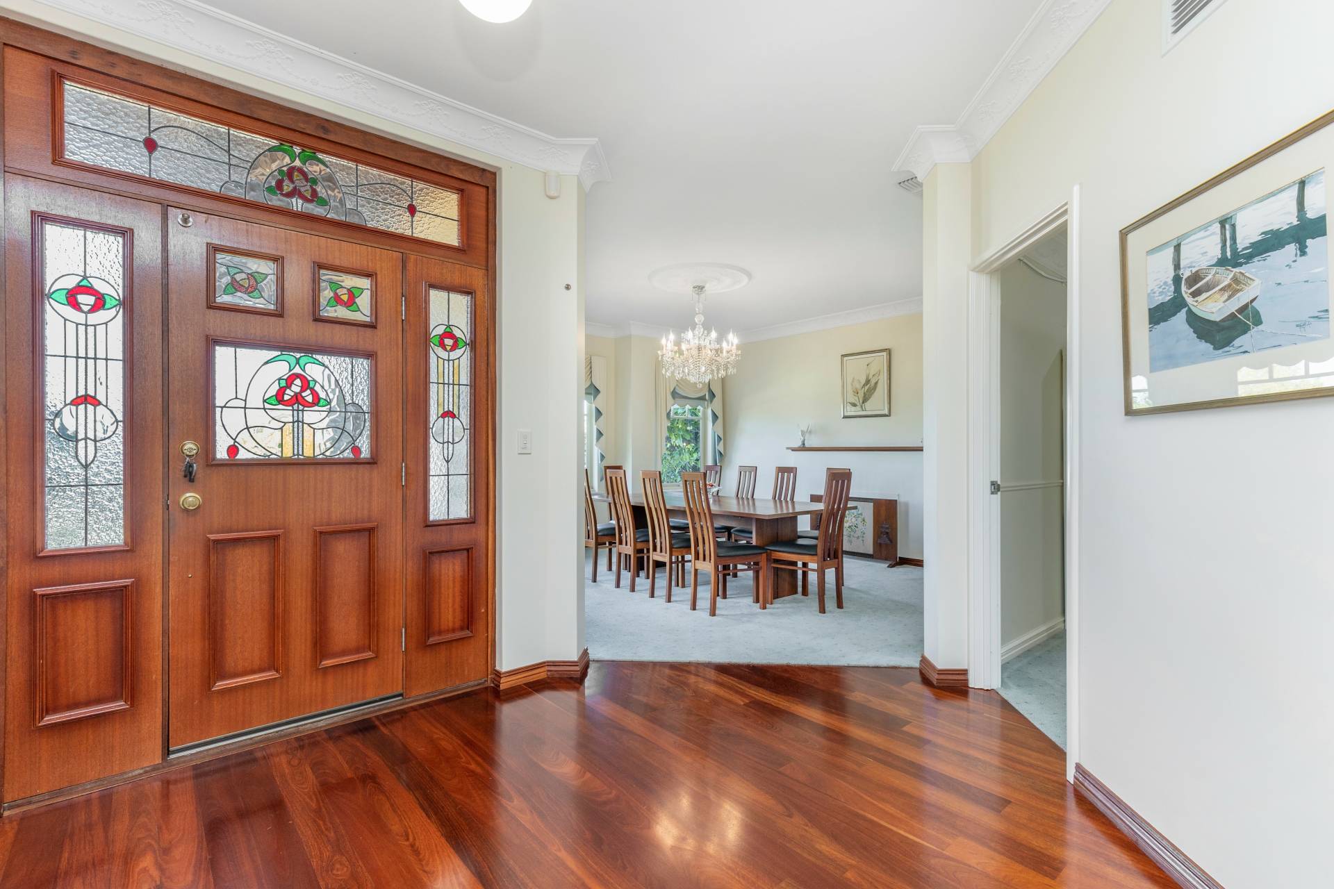 Ample natural light, high ceilings and gleaming polished Jarrah floorboards impress upon entry. Spacious formal living and dining/music rooms adjoin the entry in the front zone of the home, as does the study or home office.