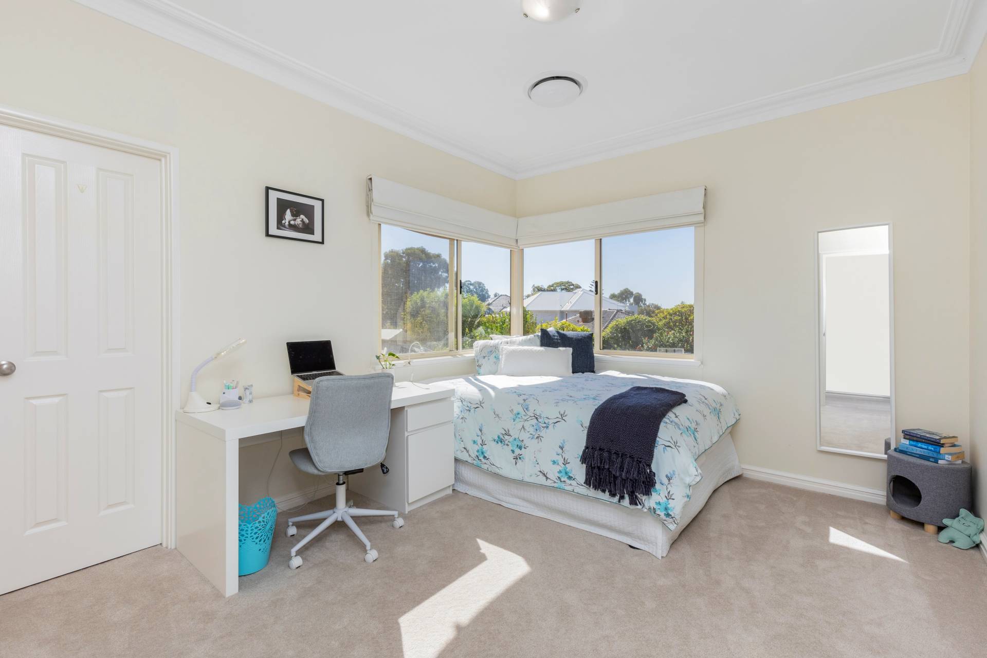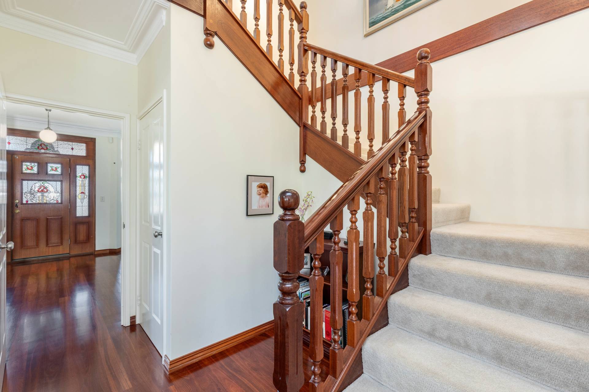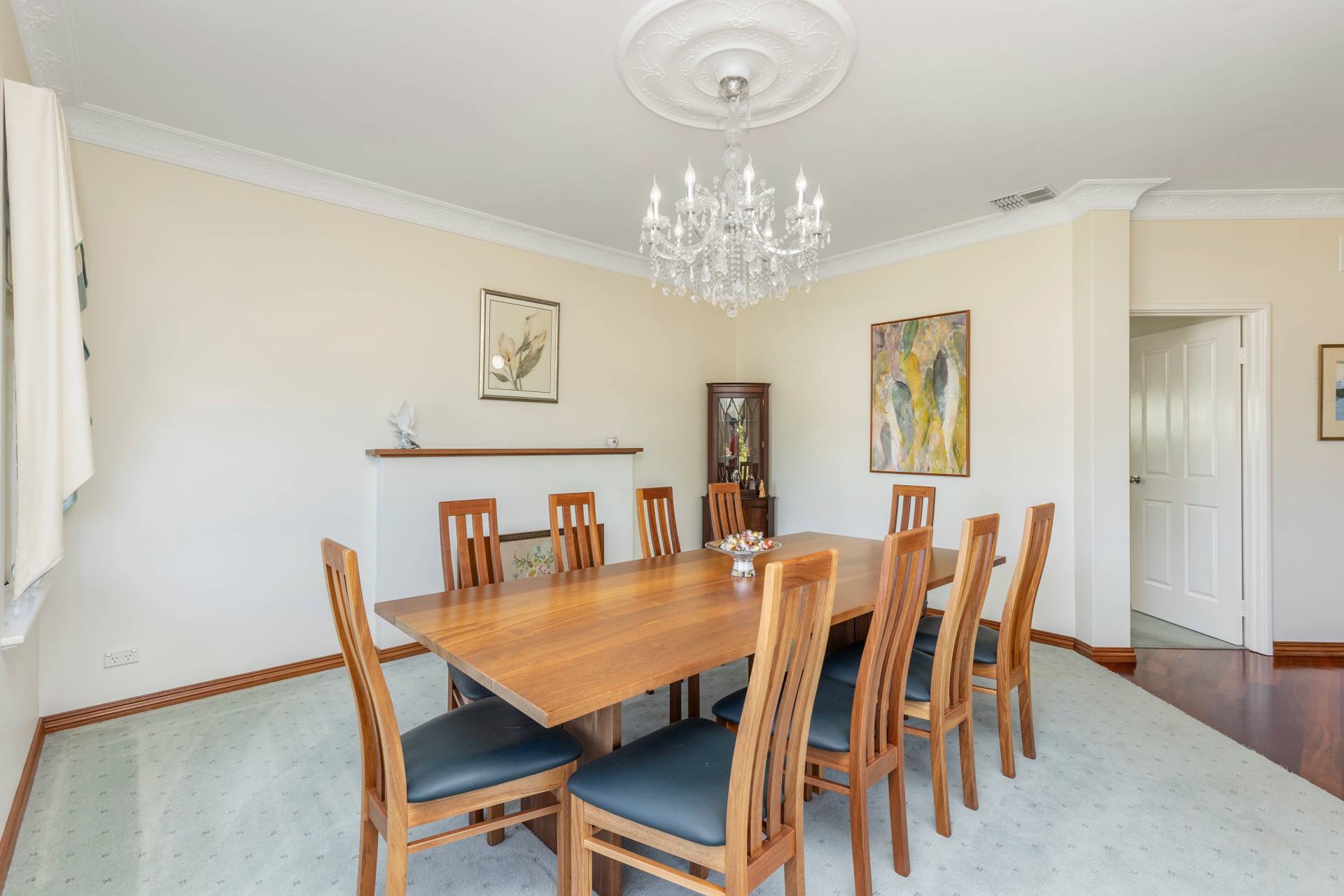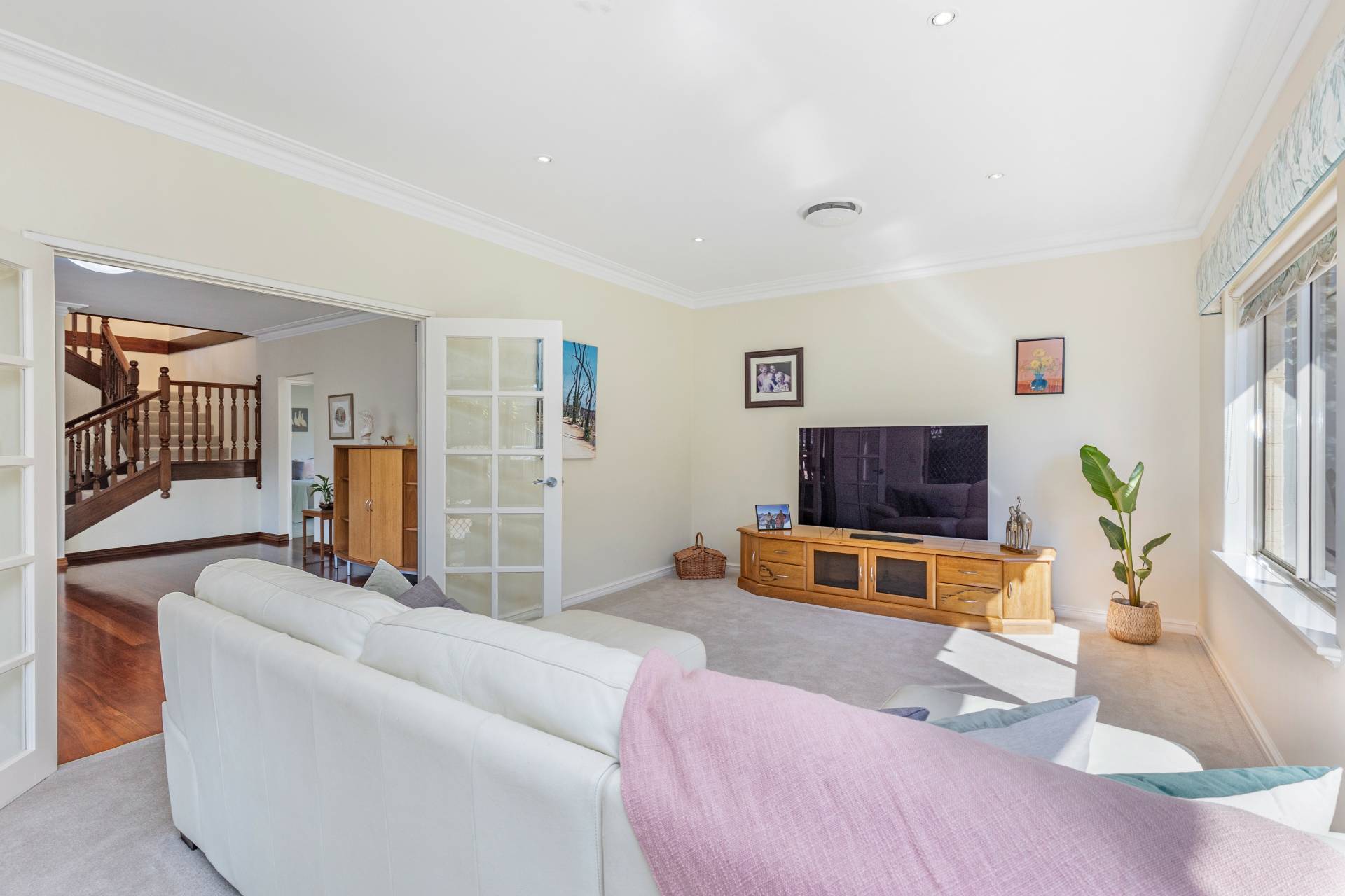 Ample natural light, high ceilings and gleaming polished Jarrah floorboards impress upon entry. Spacious formal living and dining/music rooms adjoin the entry in the front zone of the home, as does the study or home office.
