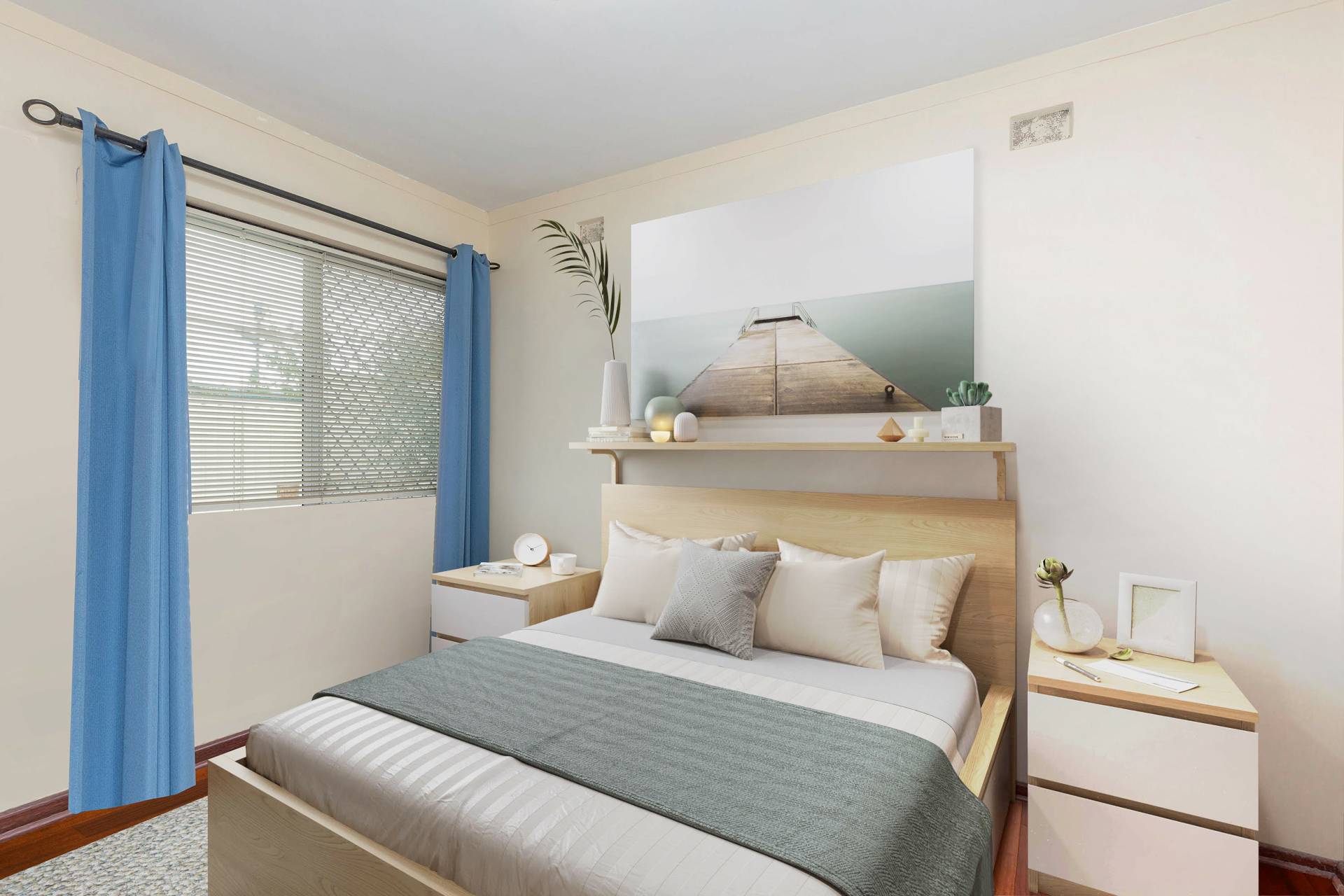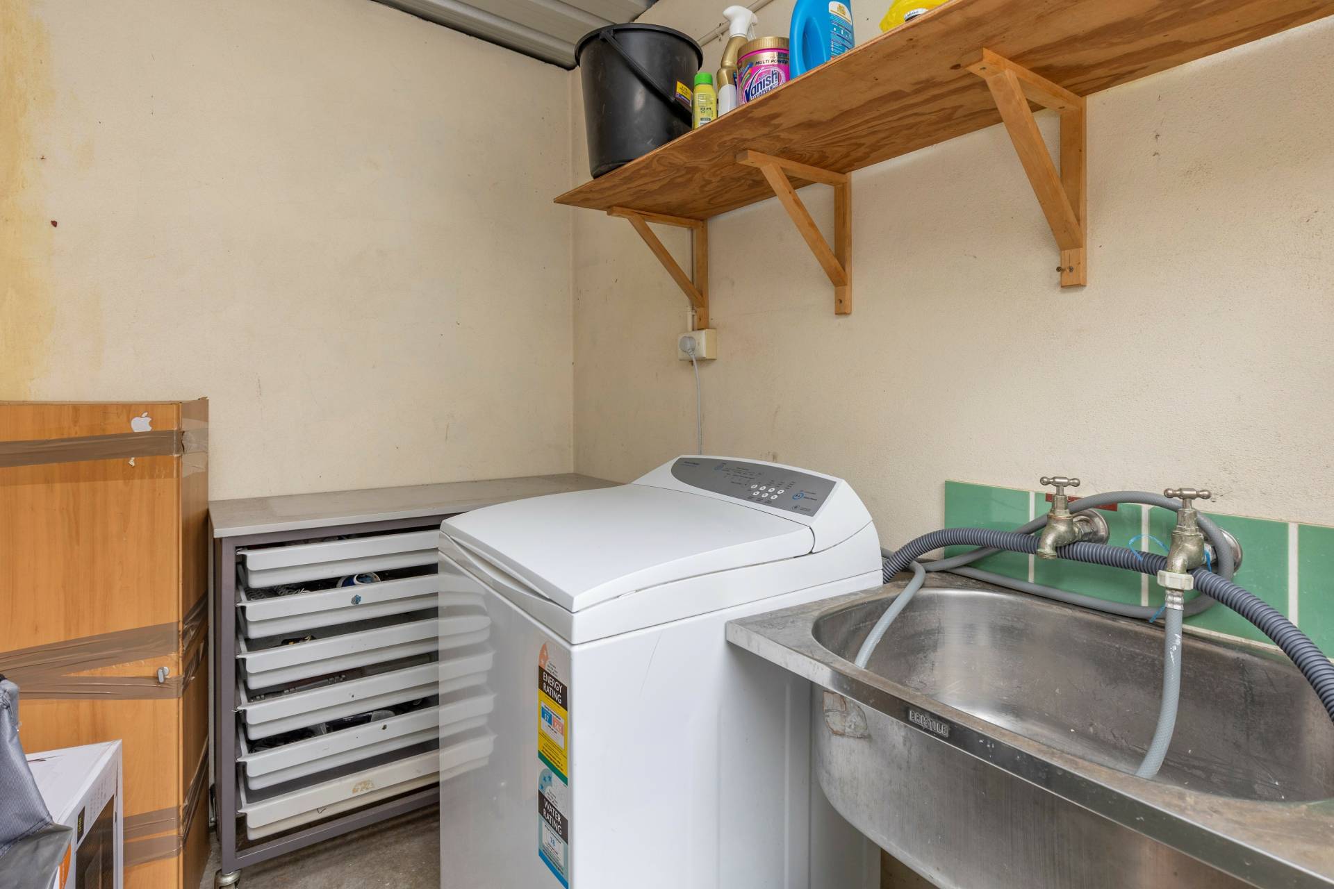 There are 2 good sized bedrooms serviced by a central bathroom, separate laundry & store room, ample parking and neatly maintained established gardens.