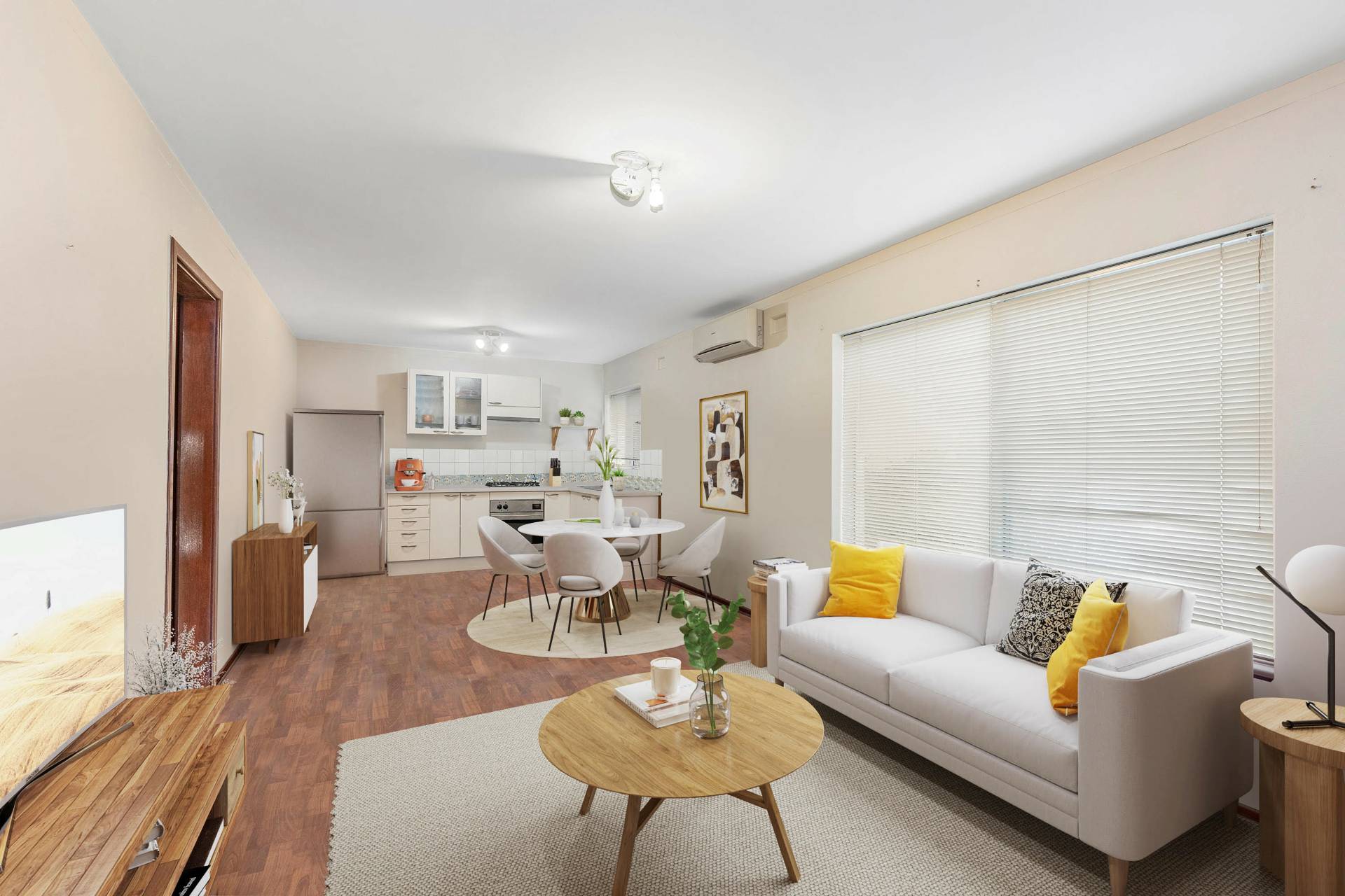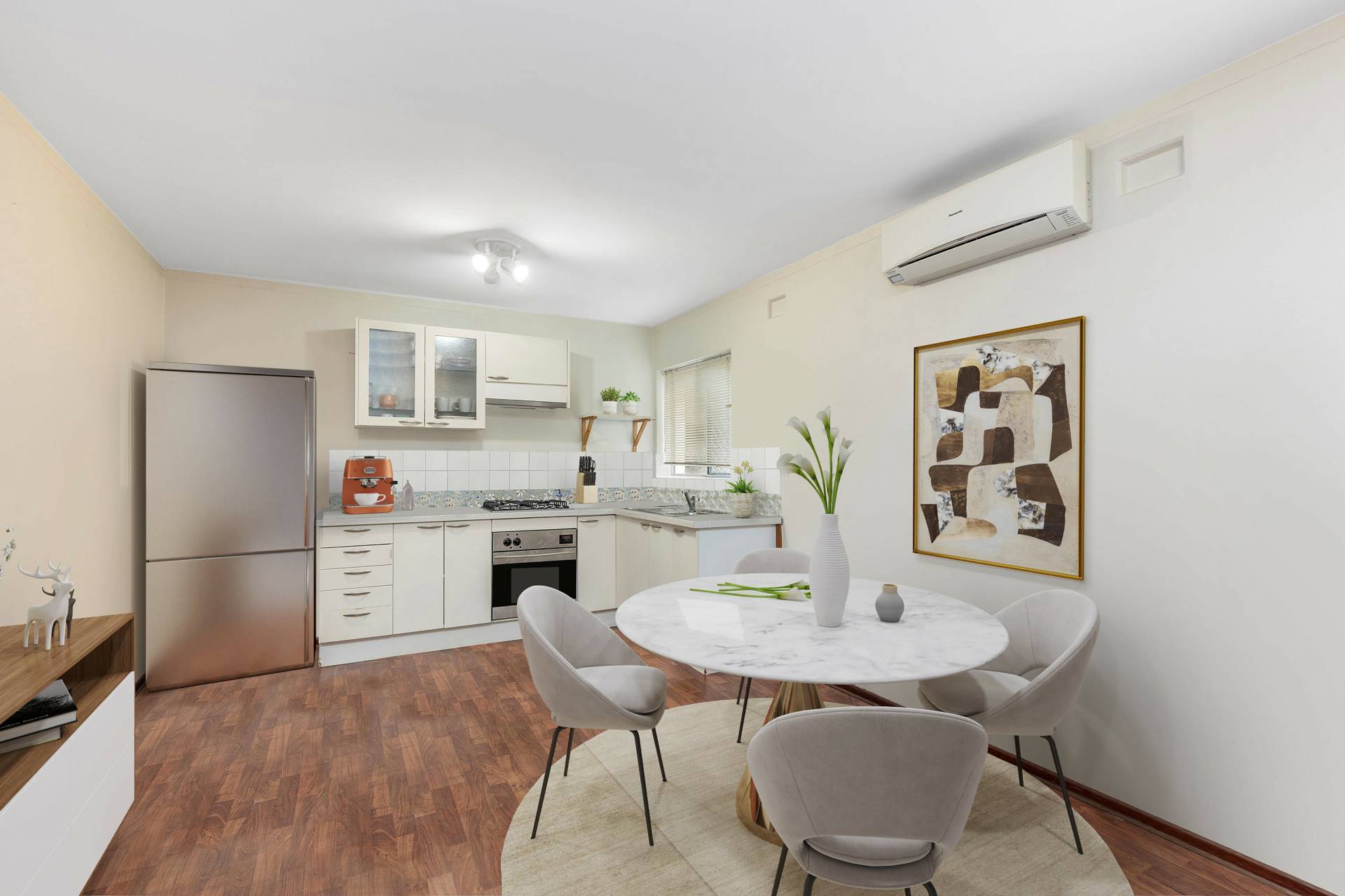 This sought after nicely presented ground floor end apartment is situated in a small complex of only 6 offering a spacious open plan living/meals and kitchen featuring timber finish flooring and a modern kitchen with gas cook-top, under-bench oven, plenty of cupboard space and a reverse cycle split system air-conditioner.