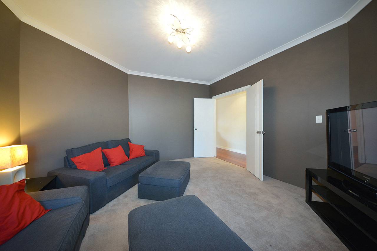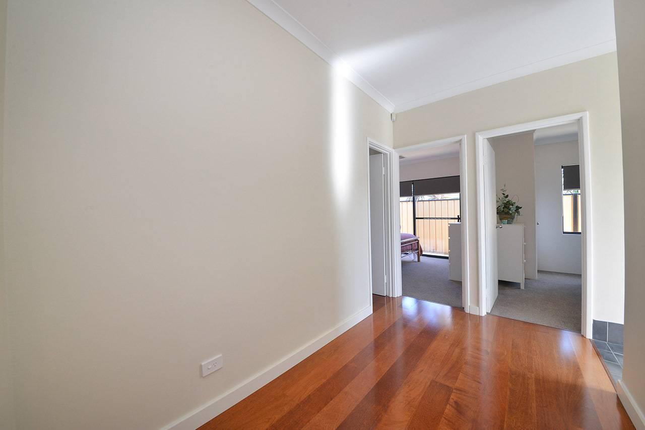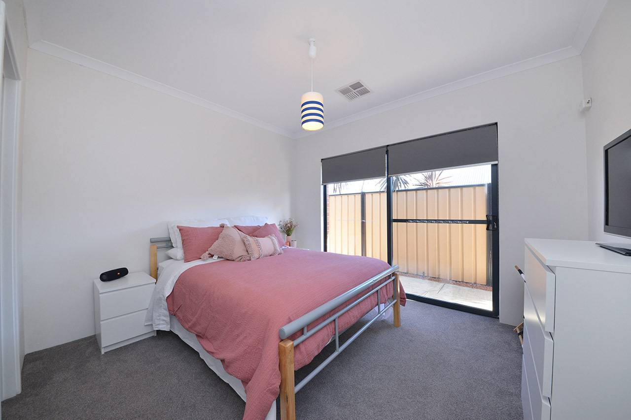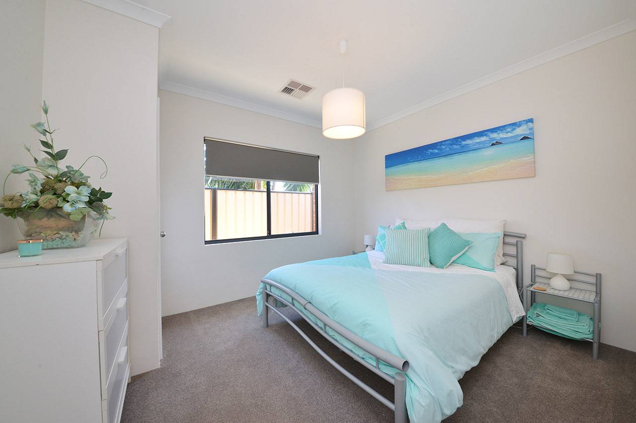 Spacious master bedroom with extra-large walk-through robe, feature lighting, quality plantation blinds to front windows and split system air-conditioning