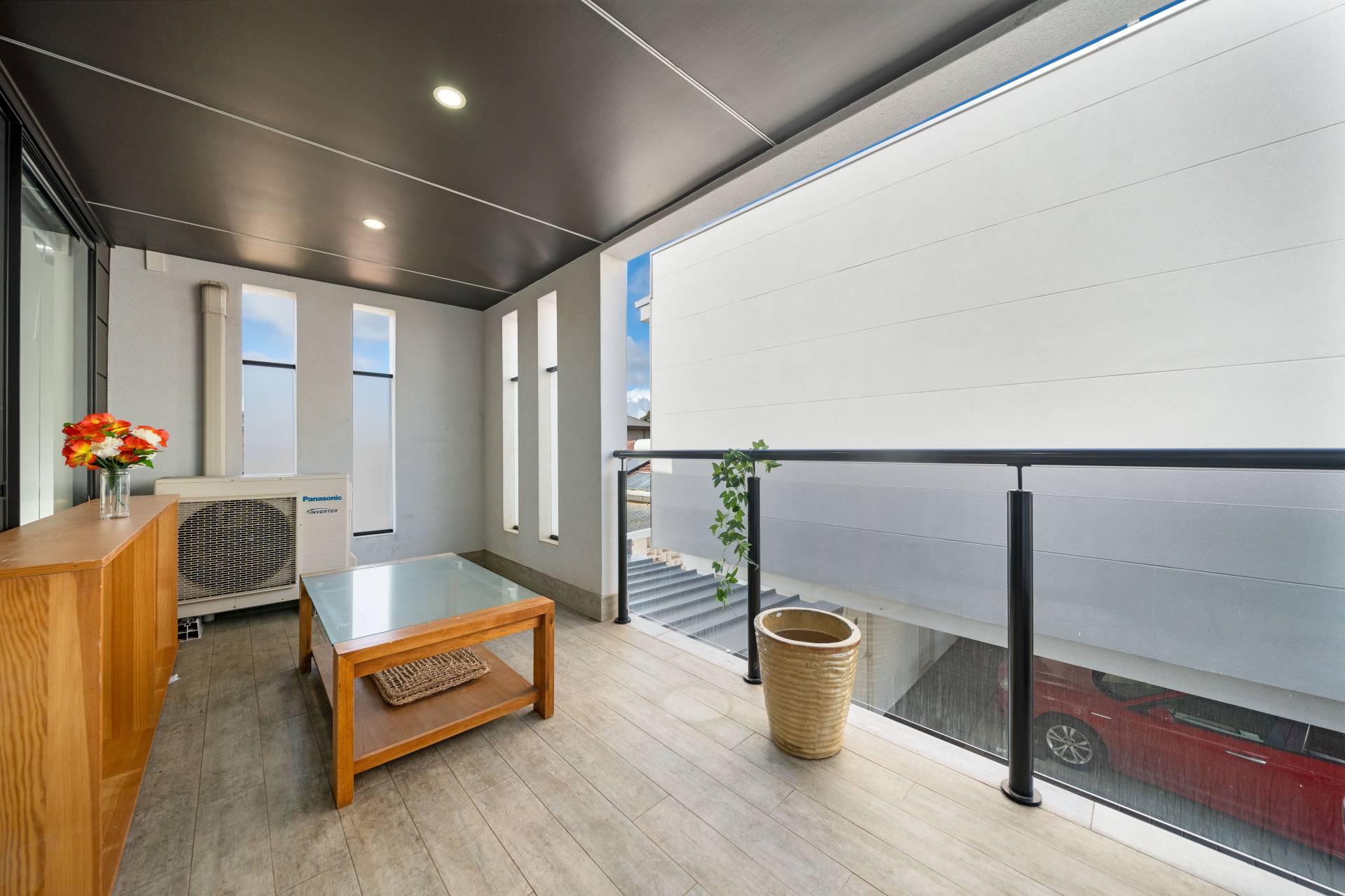 • Spacious covered balcony under the main roof
