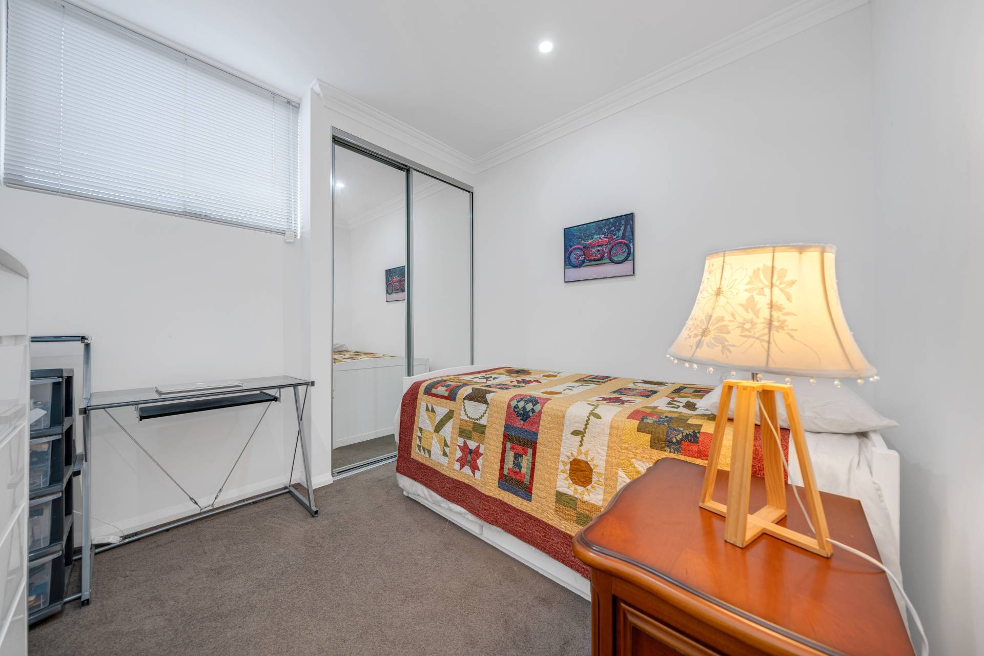• Two bedrooms (with built-in mirrored robes), one bathroom