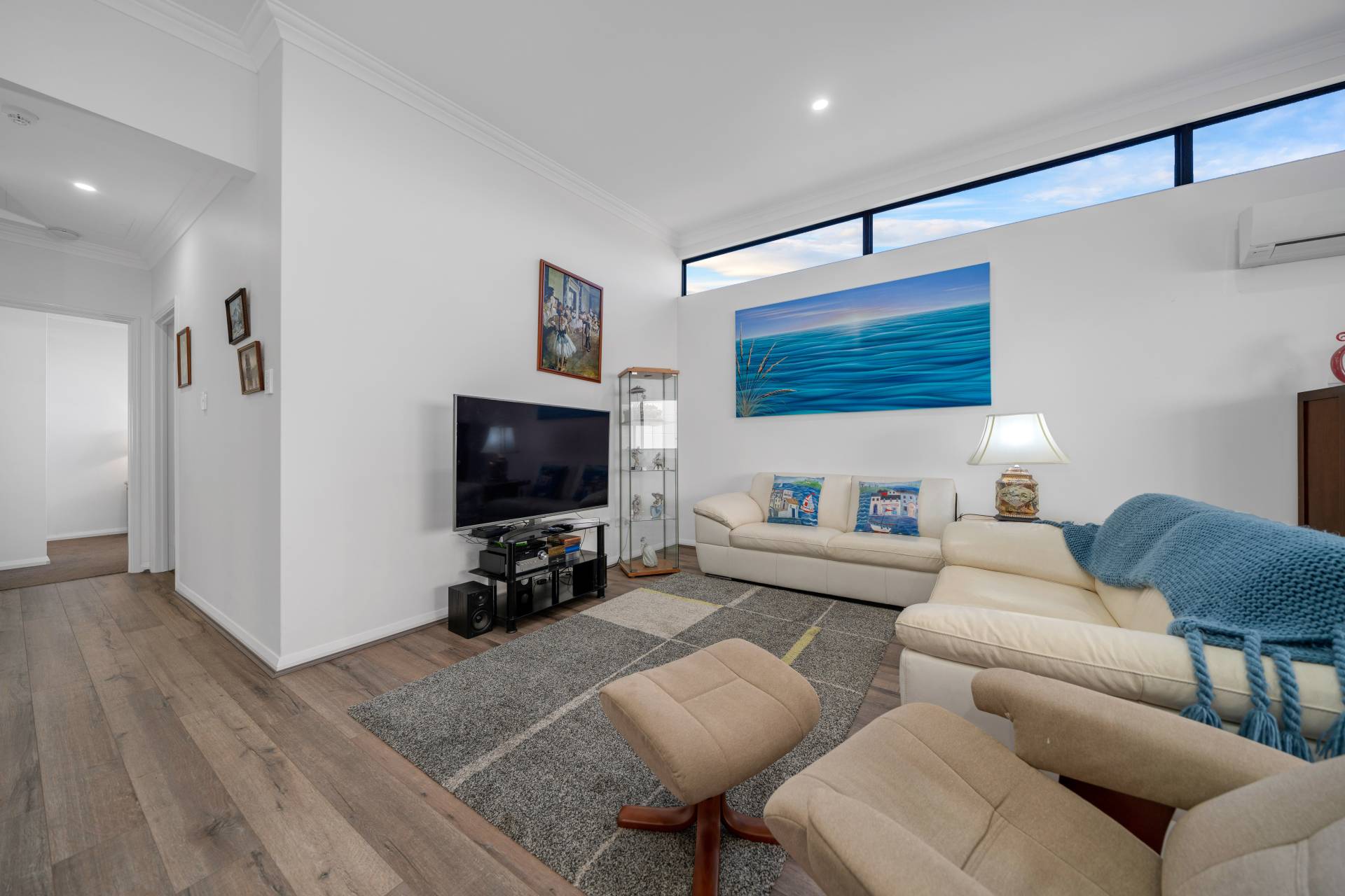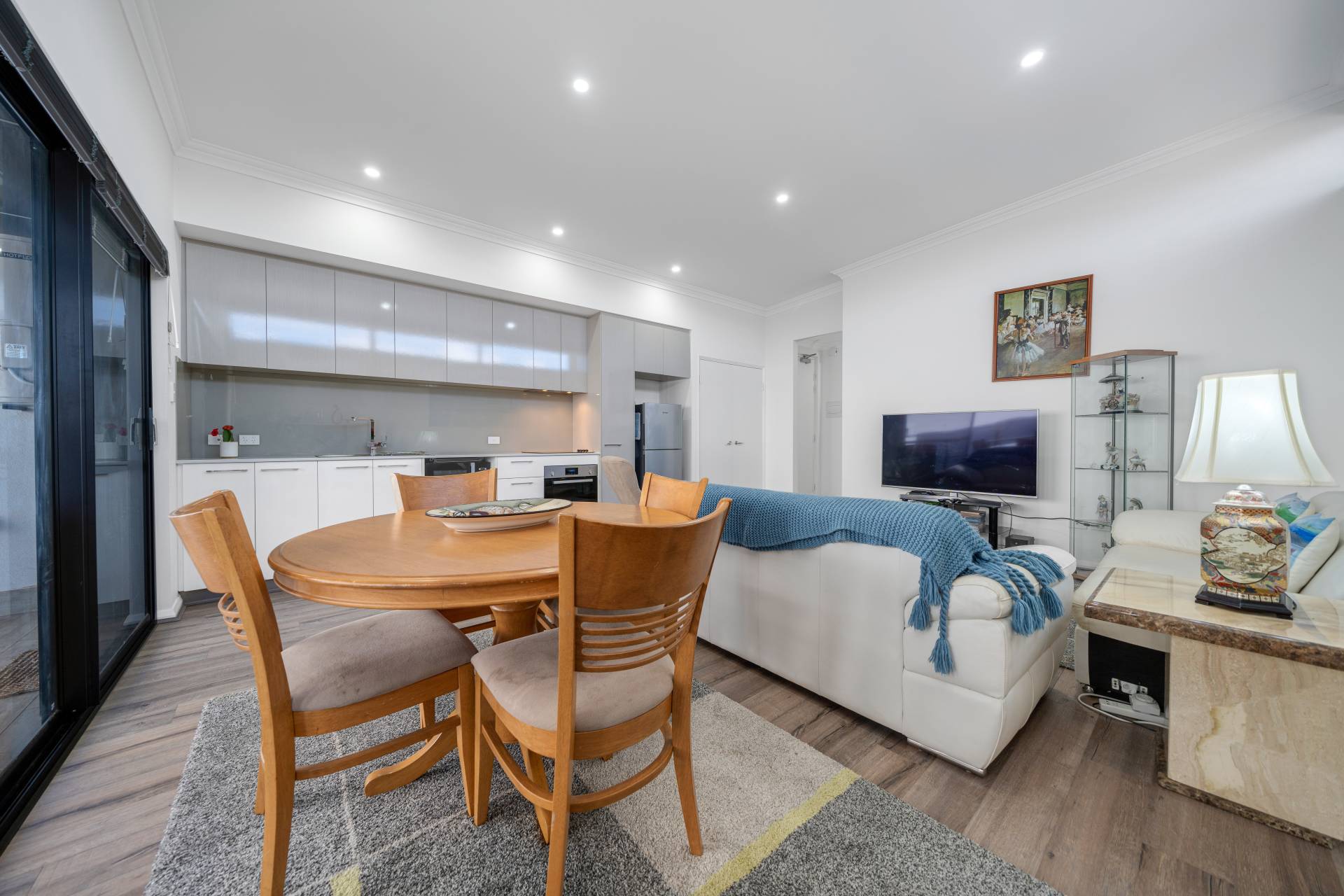 Stylish throughout, this spacious property features modern décor and generous open-plan living and dining flowing out to a roomy and covered balcony. The slick kitchen runs along one wall of the living area, leaving plenty of open space, which lends itself to year-round entertaining.