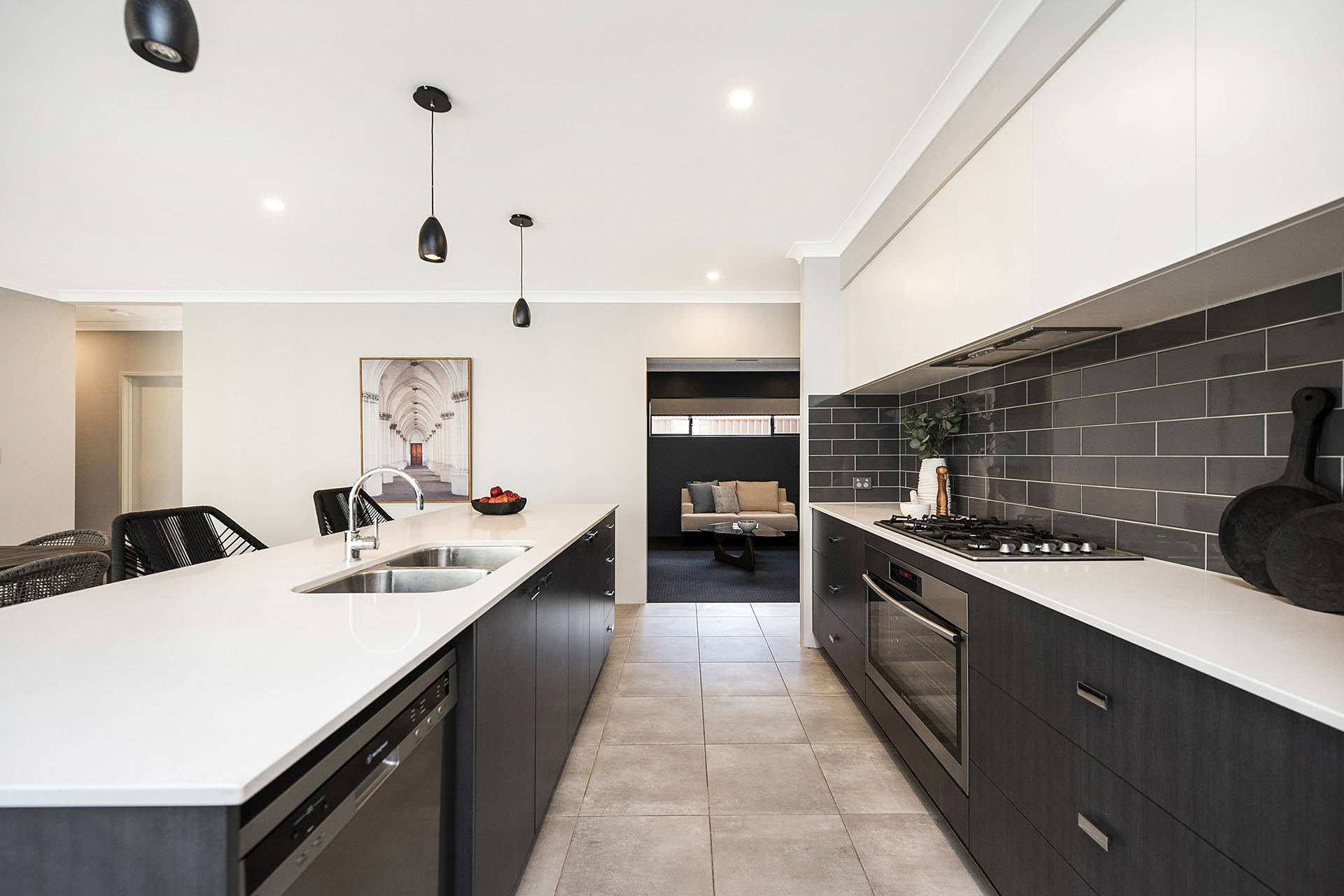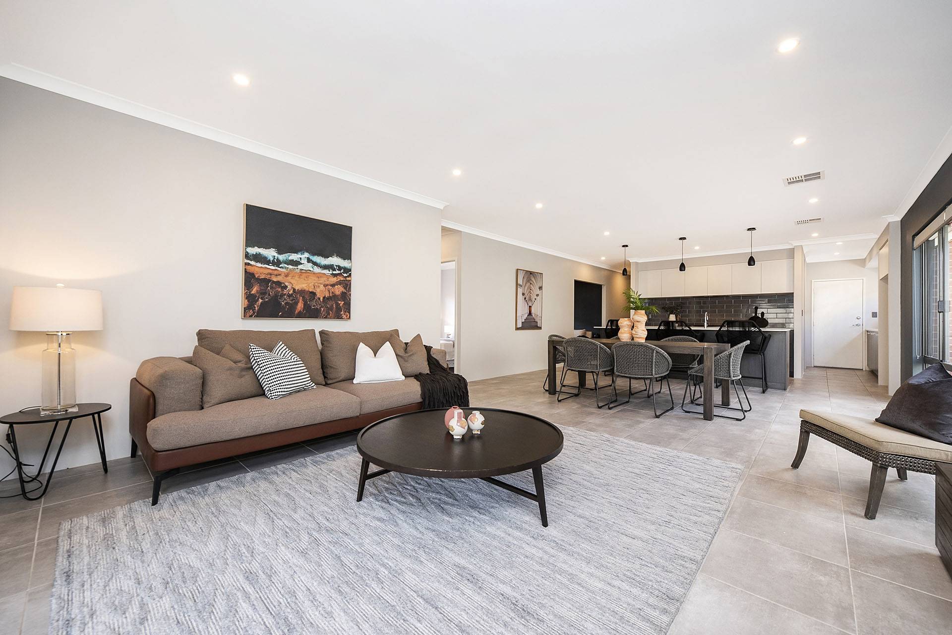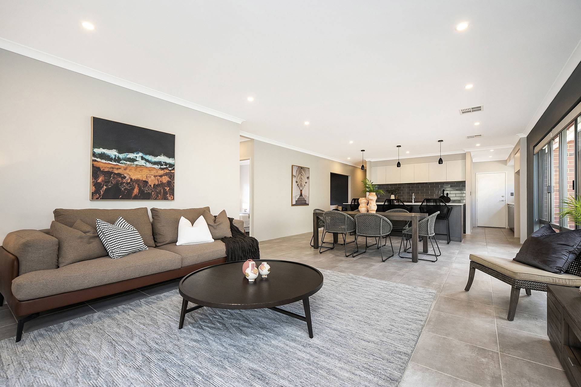 Relax into this gorgeous family-sized home that is built for function and finished with style. Soft charcoal hues and shades of white run through the home in clean lines, creating wide spaces for sunlight, with discreet LEDs to light every corner in this stunning four-bedroom abode.