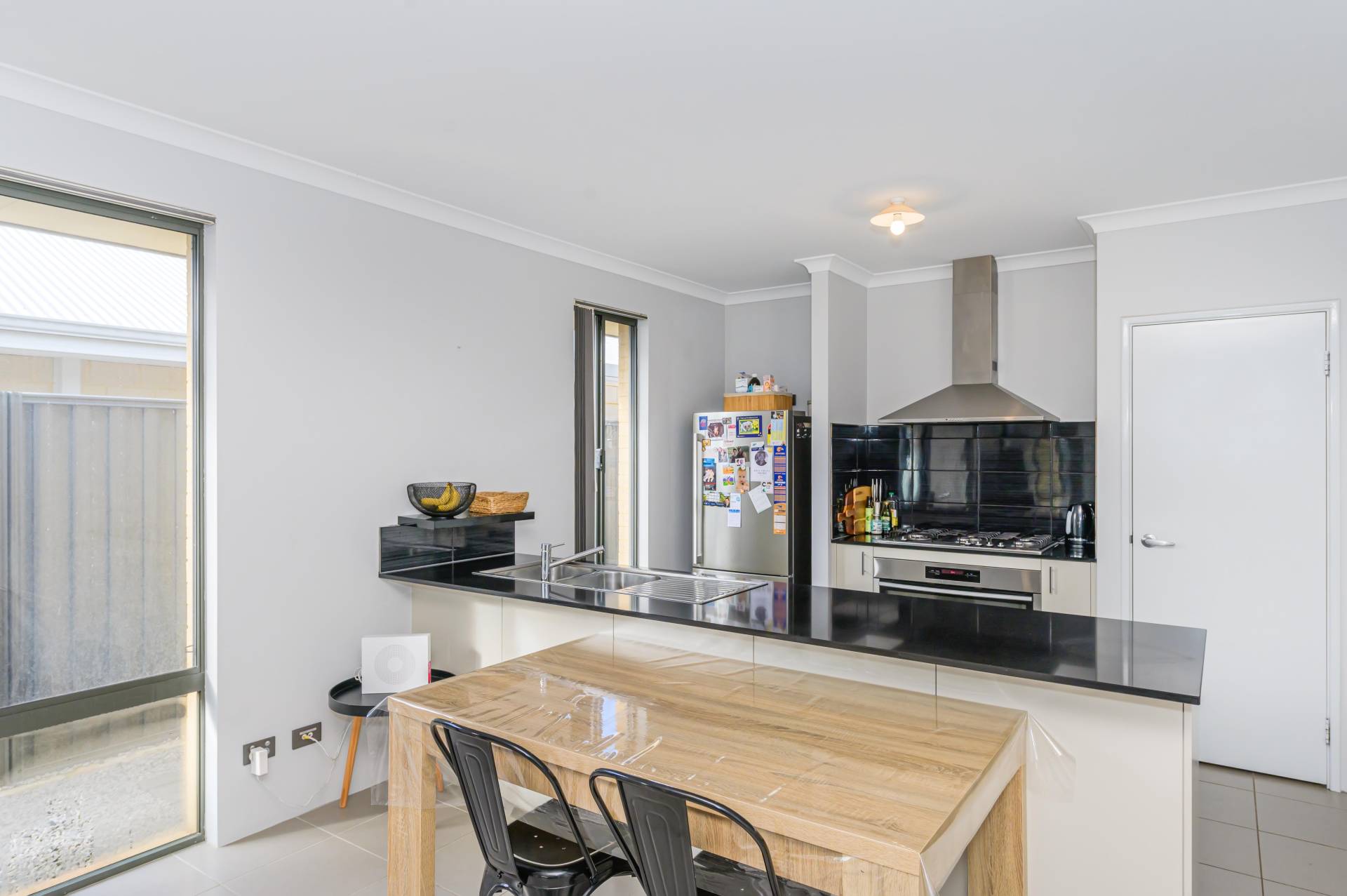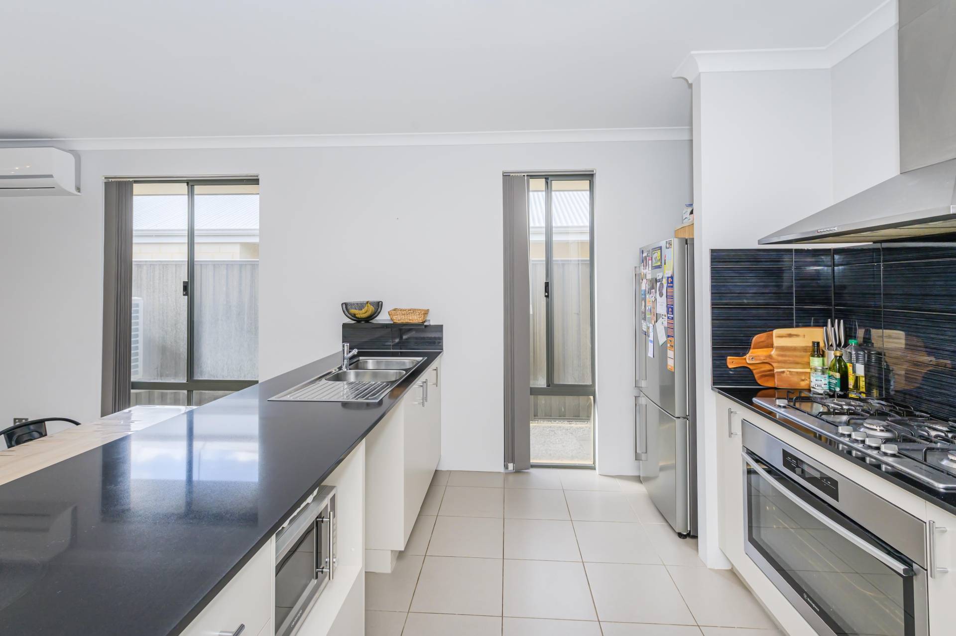 The heart of the home is an open plan kitchen, dining and living area which includes a well-presented kitchen; boasting stone bench tops, stainless steel cooking appliances and plenty of cupboard space. The living and dining areas both have an amazing amount of natural light thanks to the floor to ceiling windows running down the eastern side of the home and a split system air-conditioner servicing the zone.