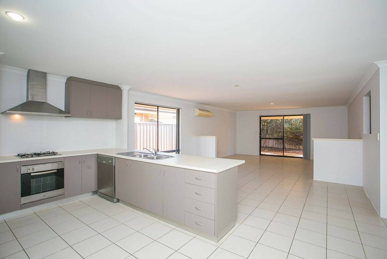 The open plan kitchen/dining/lounge room features a split system aircon for comfort in the variable Australian climate, and fully tiled flooring makes it easy to clean up when the night is done or the weekend is over. The kitchen has a few extra special features, including a twin sink, gas hotplates, a shopper's entry from the garage, a large pantry, and a custom appliance bench for morning smoothies and night-time cocktails. Residents can take their drinks outside to look at the stars, where the near-zero maintenance backyard includes a patio and established screen of trees along the fence for privacy.