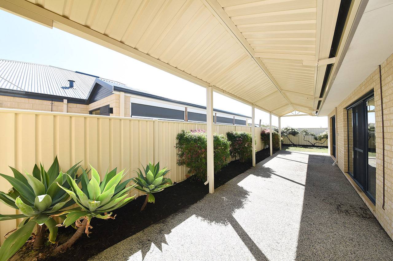 Full length pitched patio entertaining with feature aggregate concrete paving