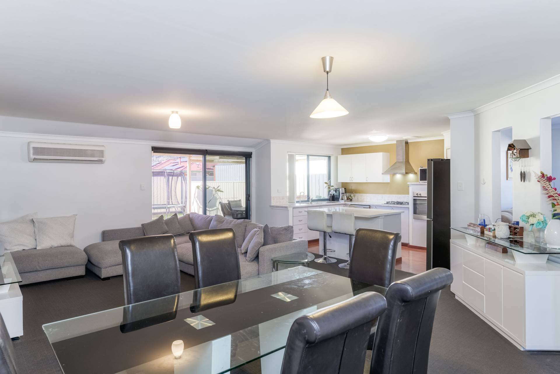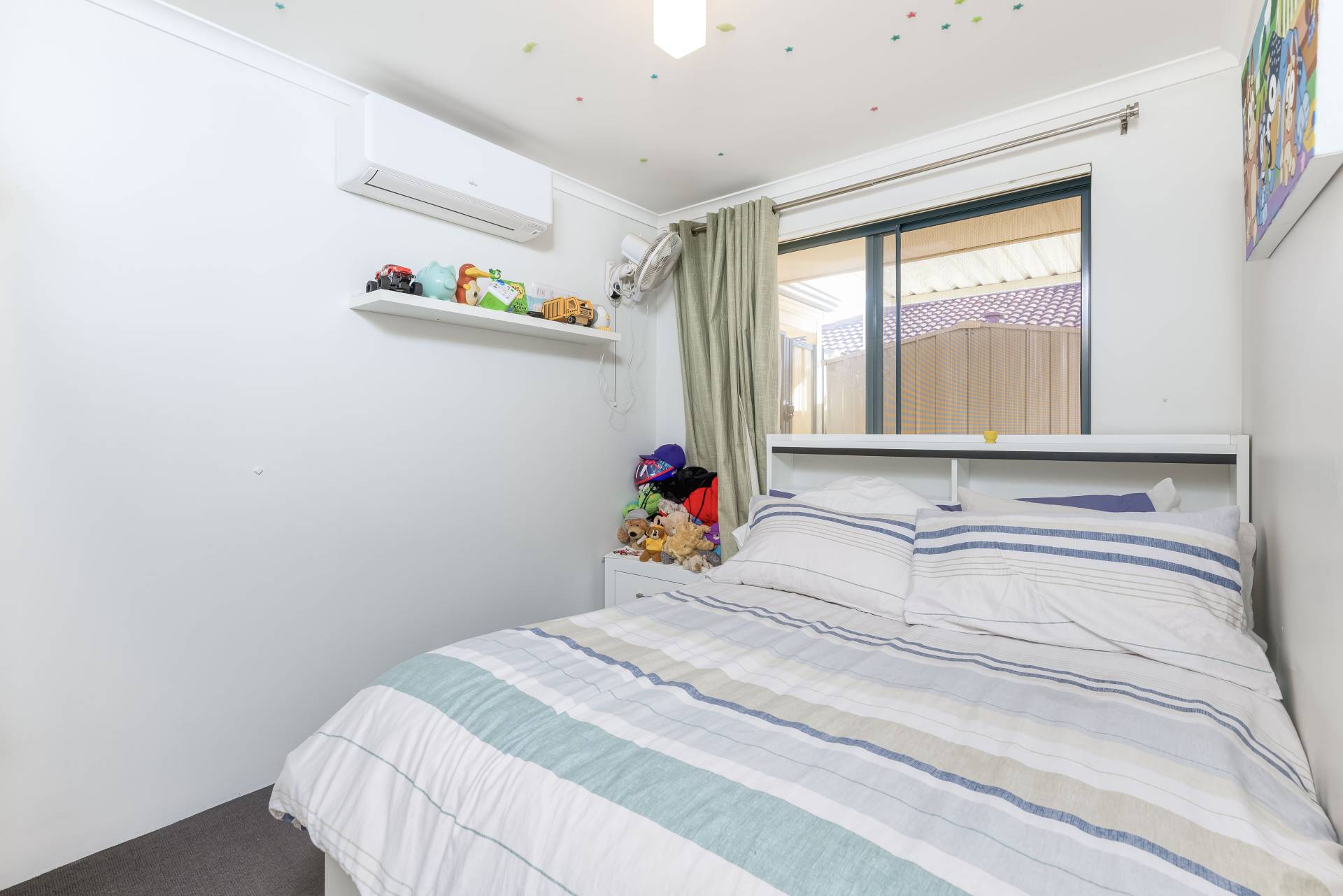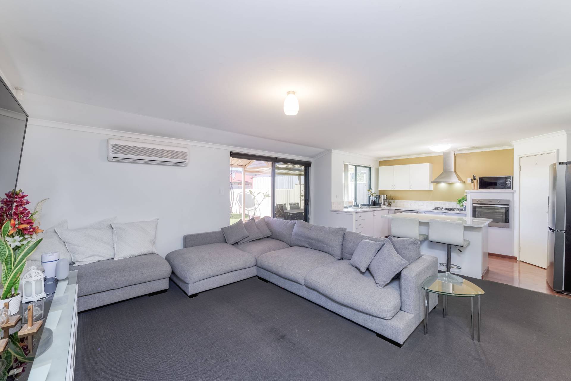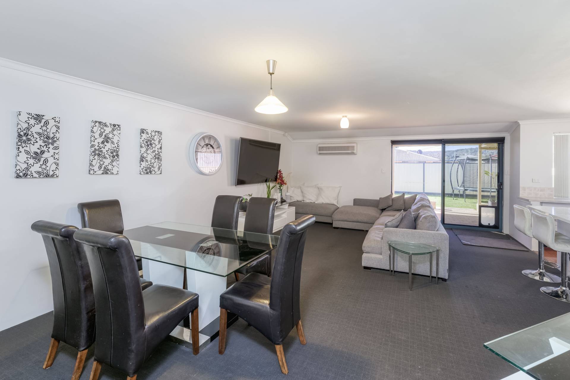 This property 4-bedroom, 2- bathroom family home represents fantastic value with a spacious block in the popular suburb of Maddington. On approach this property has lovely street appeal, wide street frontage, beautiful easy care established gardens have been lovingly cared for. Passing through the lovely, covered portico, on entry into the home there is a large family living room or media room, giving multiple living areas for all sized families, complete with stylish new roller blinds. Two electric roller shutters to the front of the home and alarm system offers peace of mind and security. Spacious master bedroom to the front of the property with walk-in robe, ensuite and split system air-conditioner.