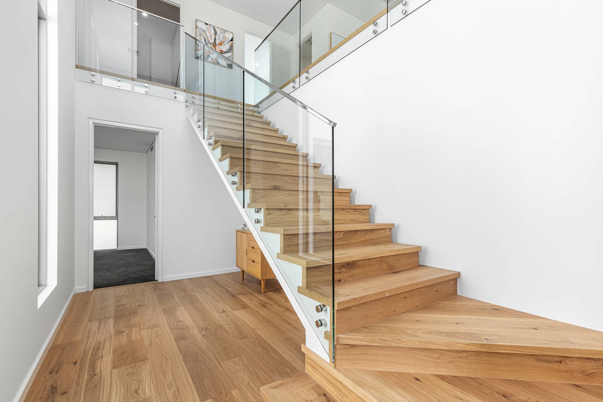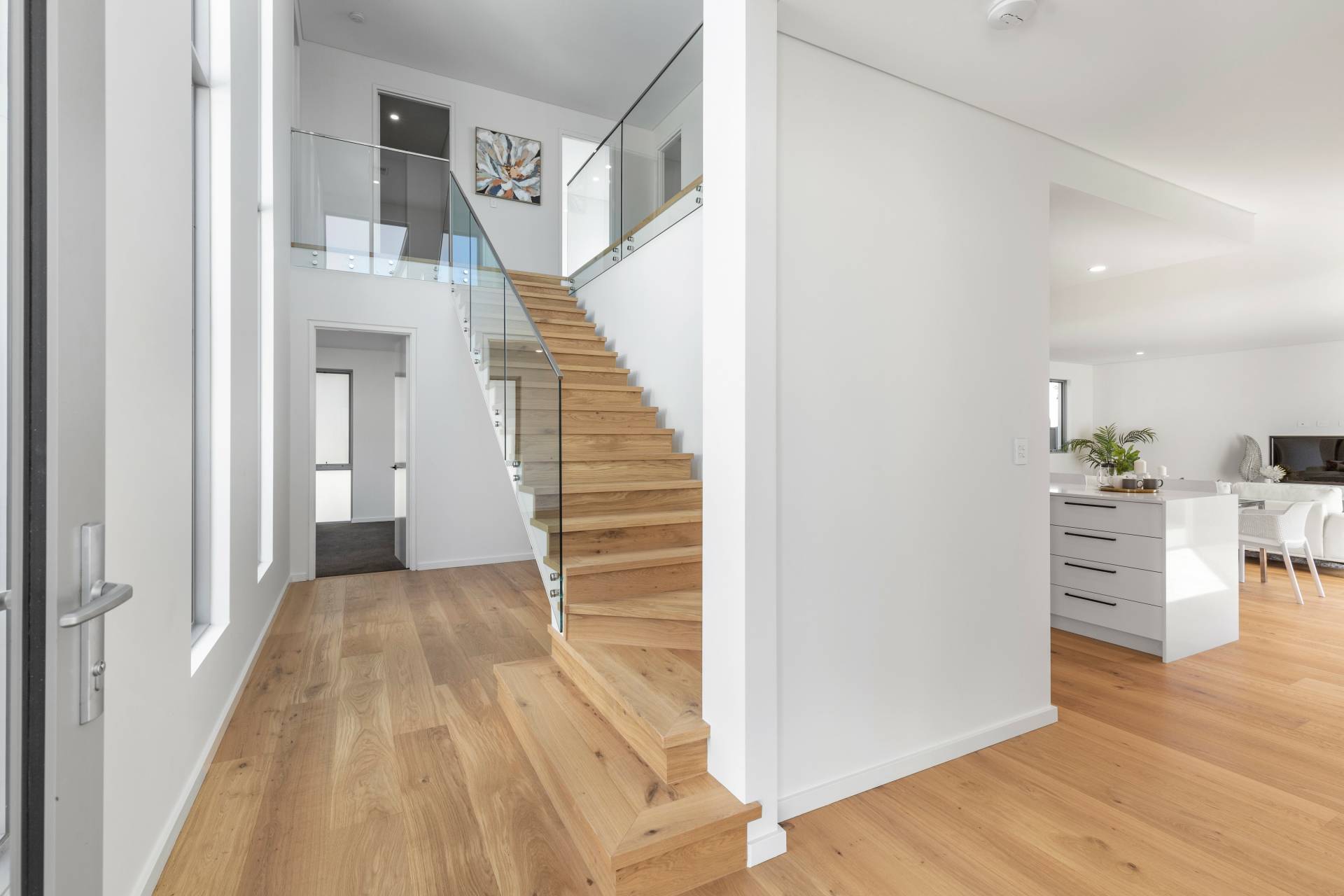 An impressive double height entry foyer incorporating floor to ceiling windows and a timber & glass feature staircase welcomes you into this fine home. Adjoining the entry is an open plan kitchen, meals and living area that opens onto a covered alfresco and two grassed garden areas for year-round seamless indoor/outdoor living.