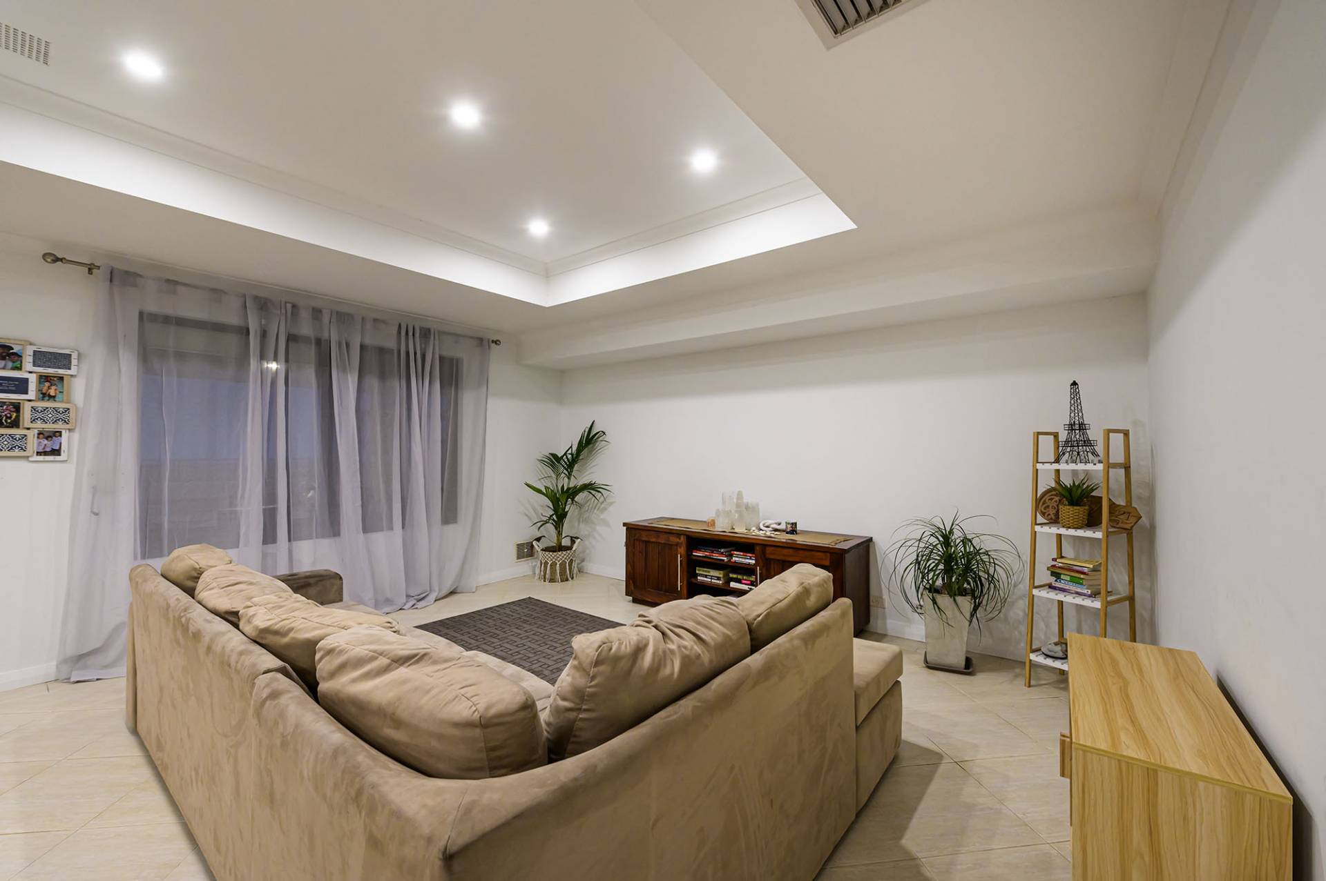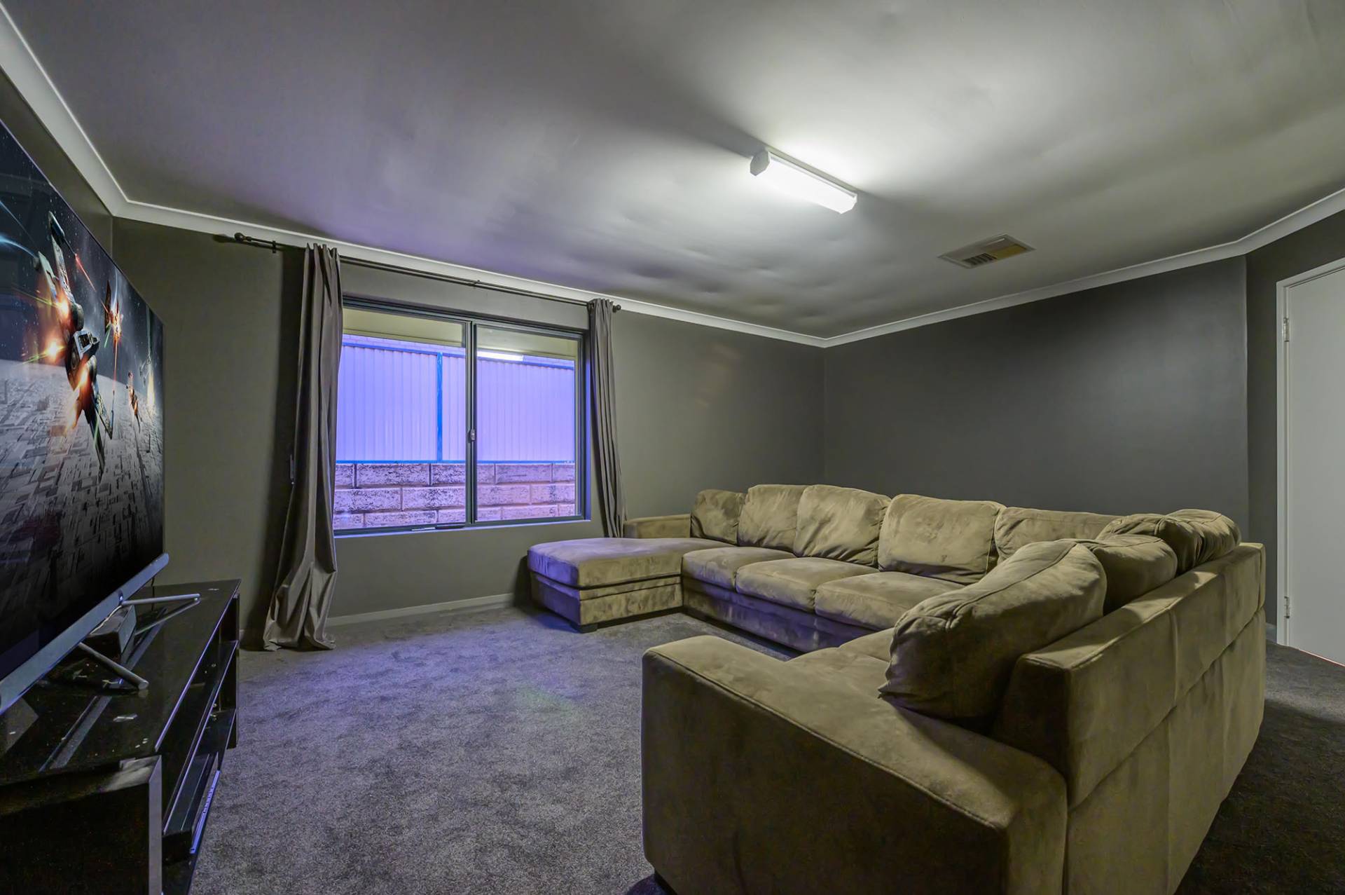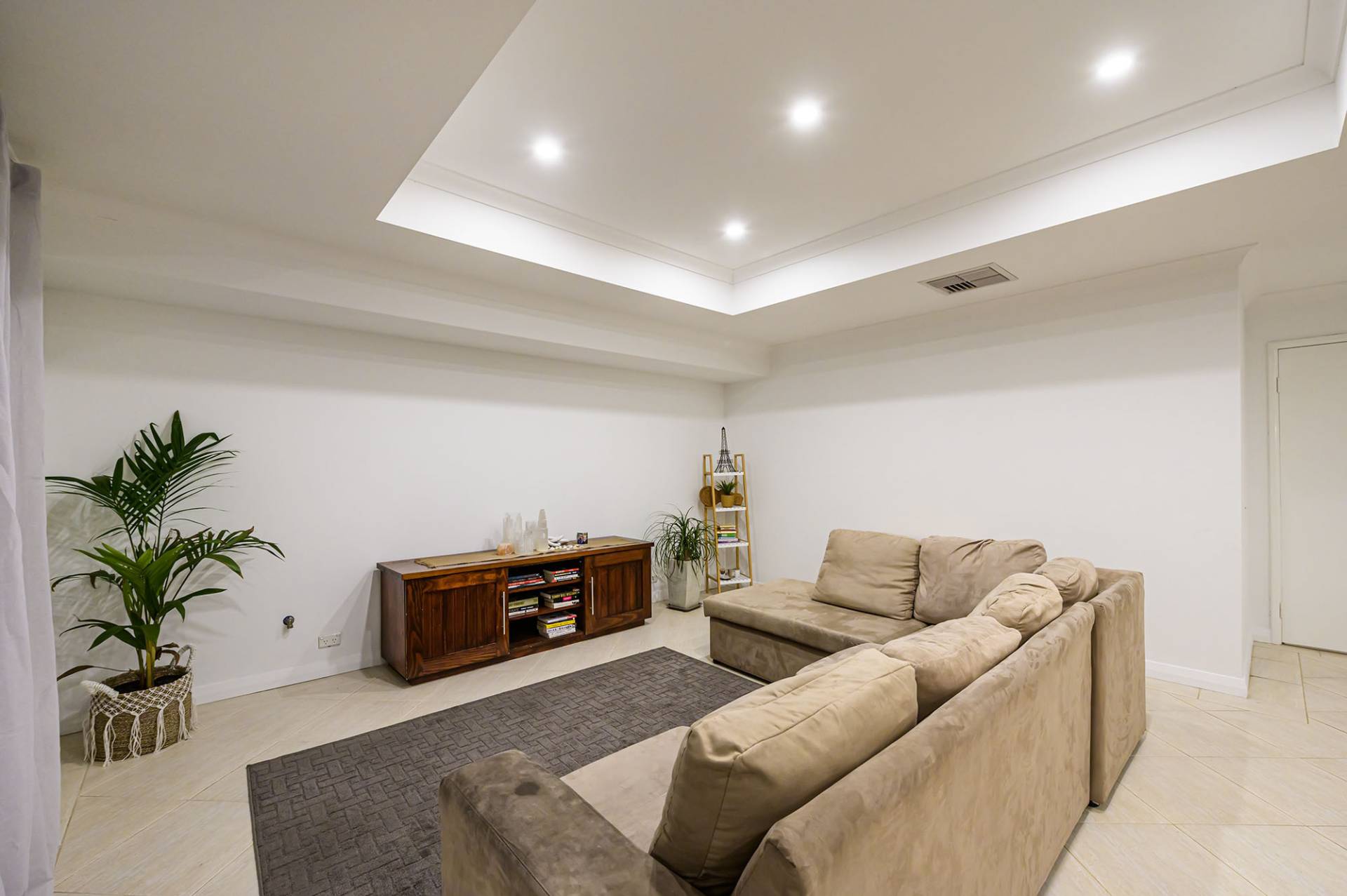 The theatre room flows off from the open plan living area and boasts freshly painted walls and new carpets. This room can be closed off which makes it a great space to use as a second living area.