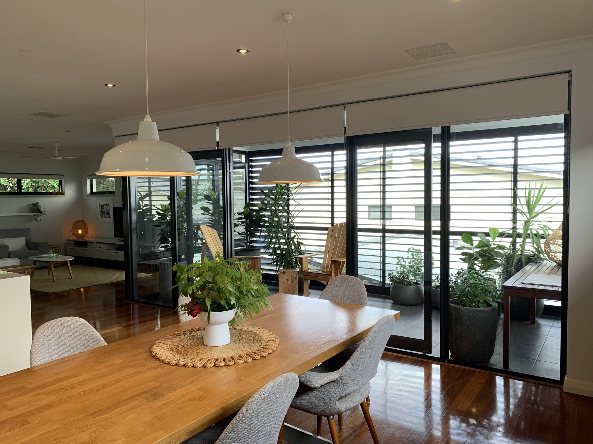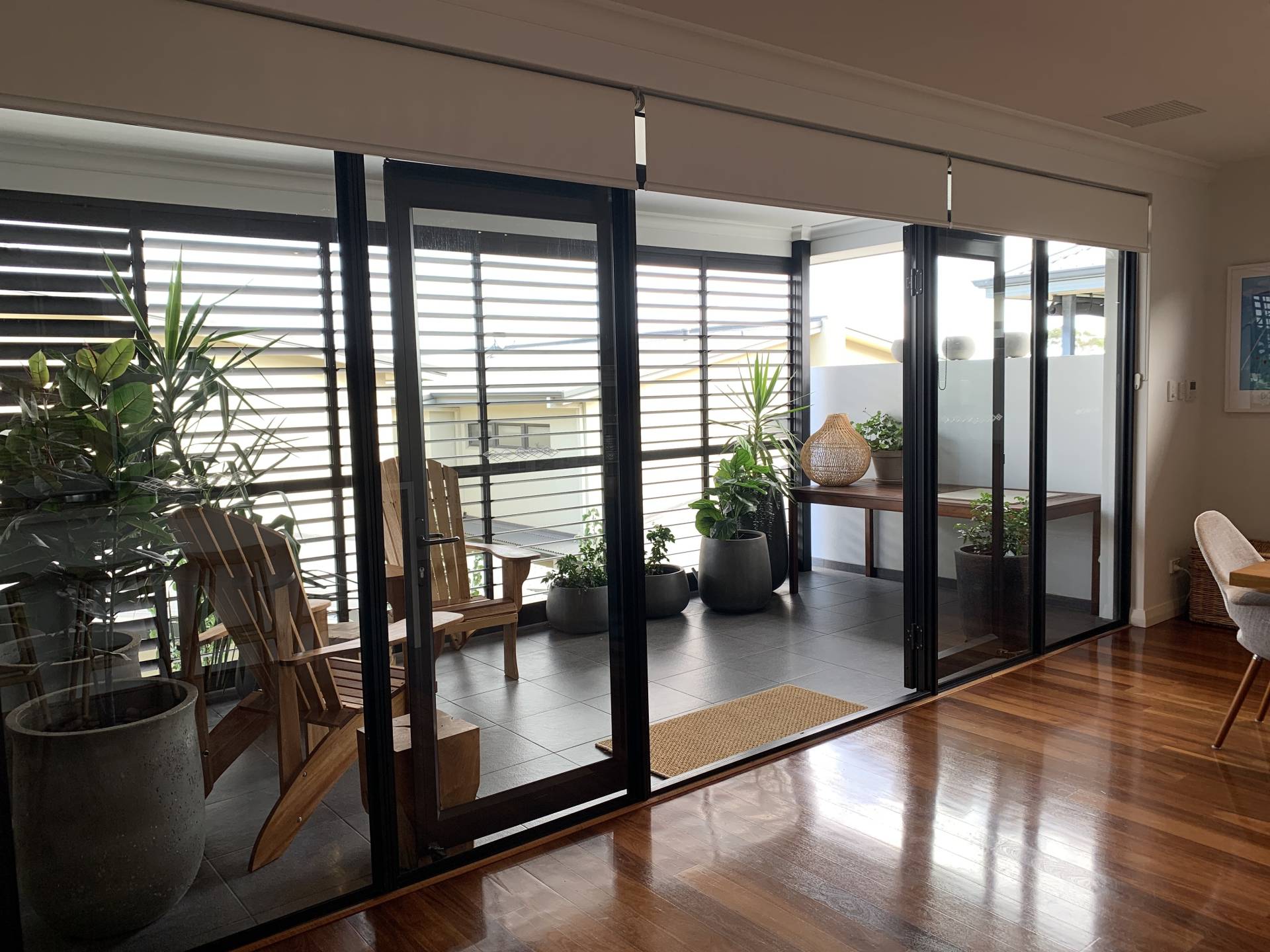 *Tiled, semi enclosed alfresco patio with aluminium shutters that can be open or closed for year-round comfort