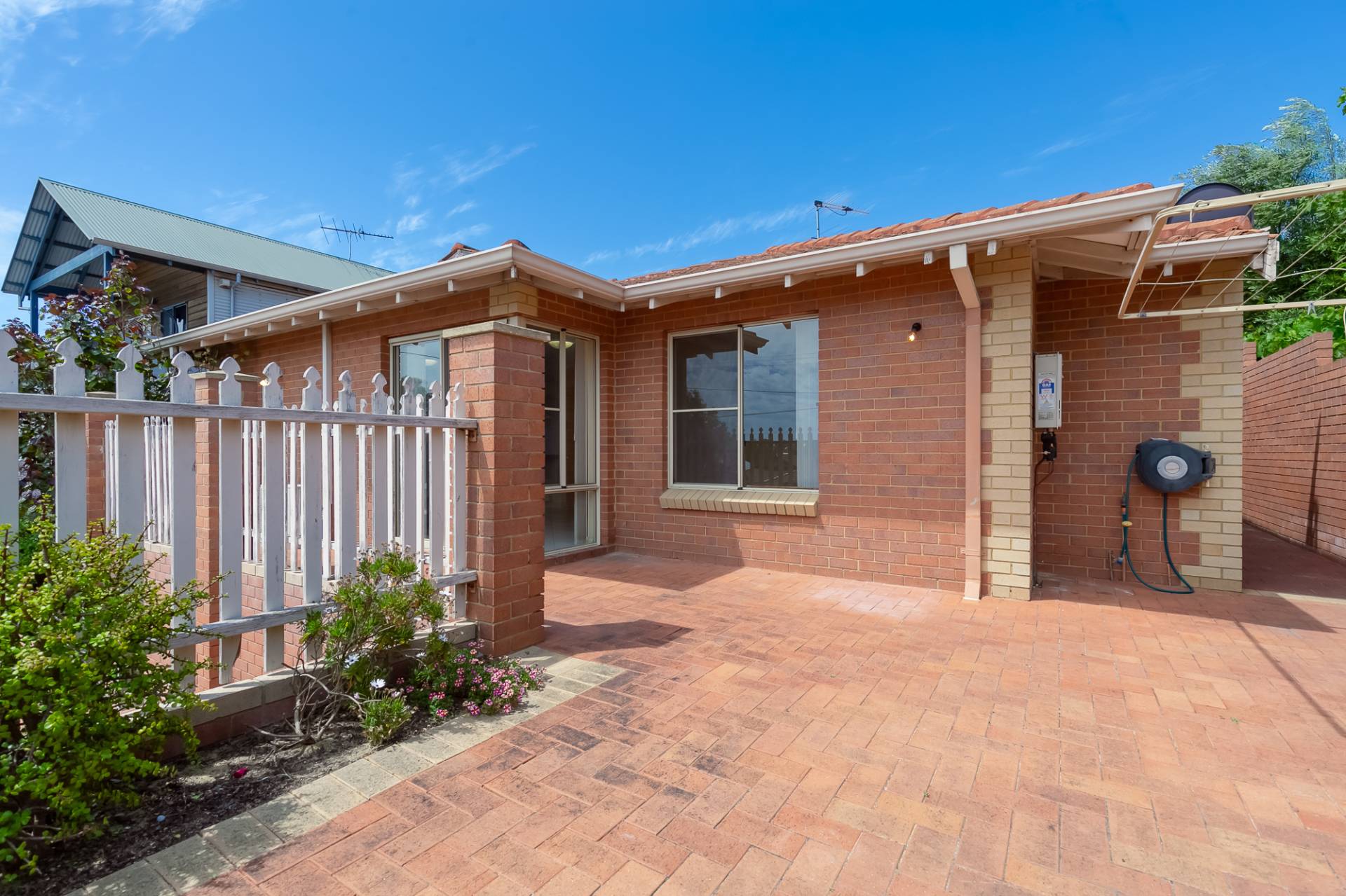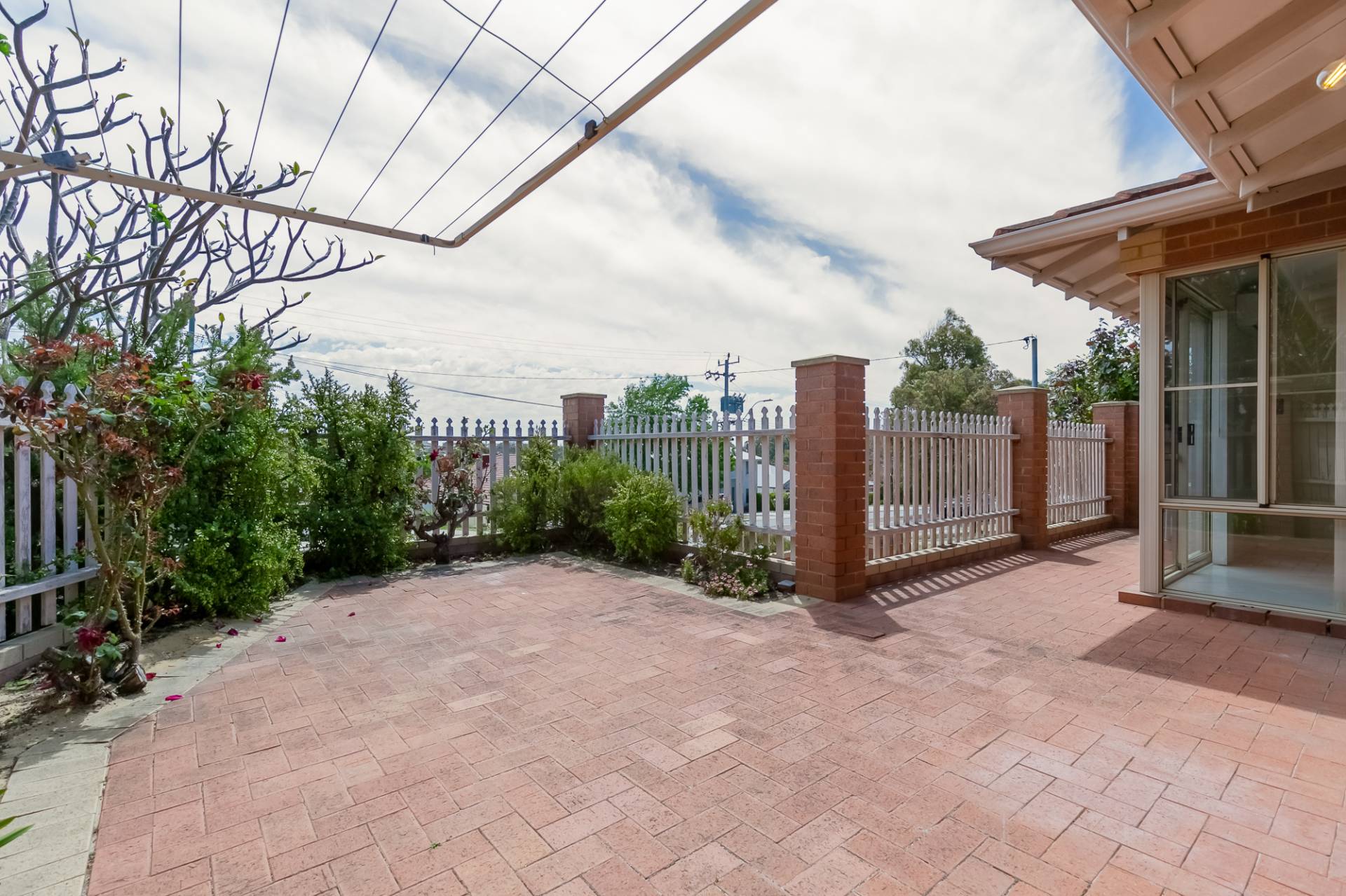 This one ticks all the boxes! Situated in an elevated position it is both private, and has a fantastic view over established gum trees. The west facing courtyard has open paved areas and easy care gardens, a beautiful place to enjoy the summer afternoons and evenings.