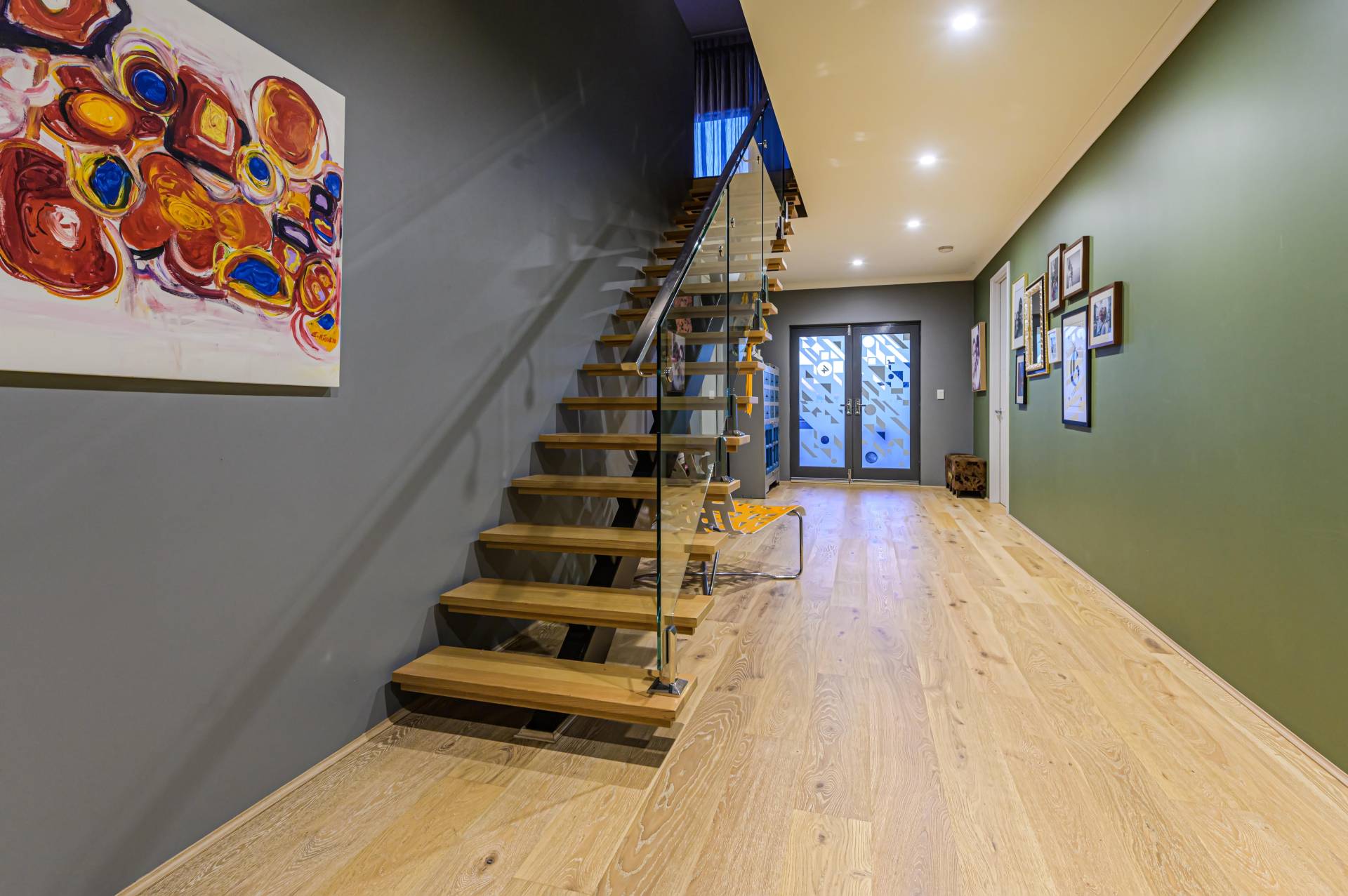 ·       Solid timber staircase with glass balustrading
