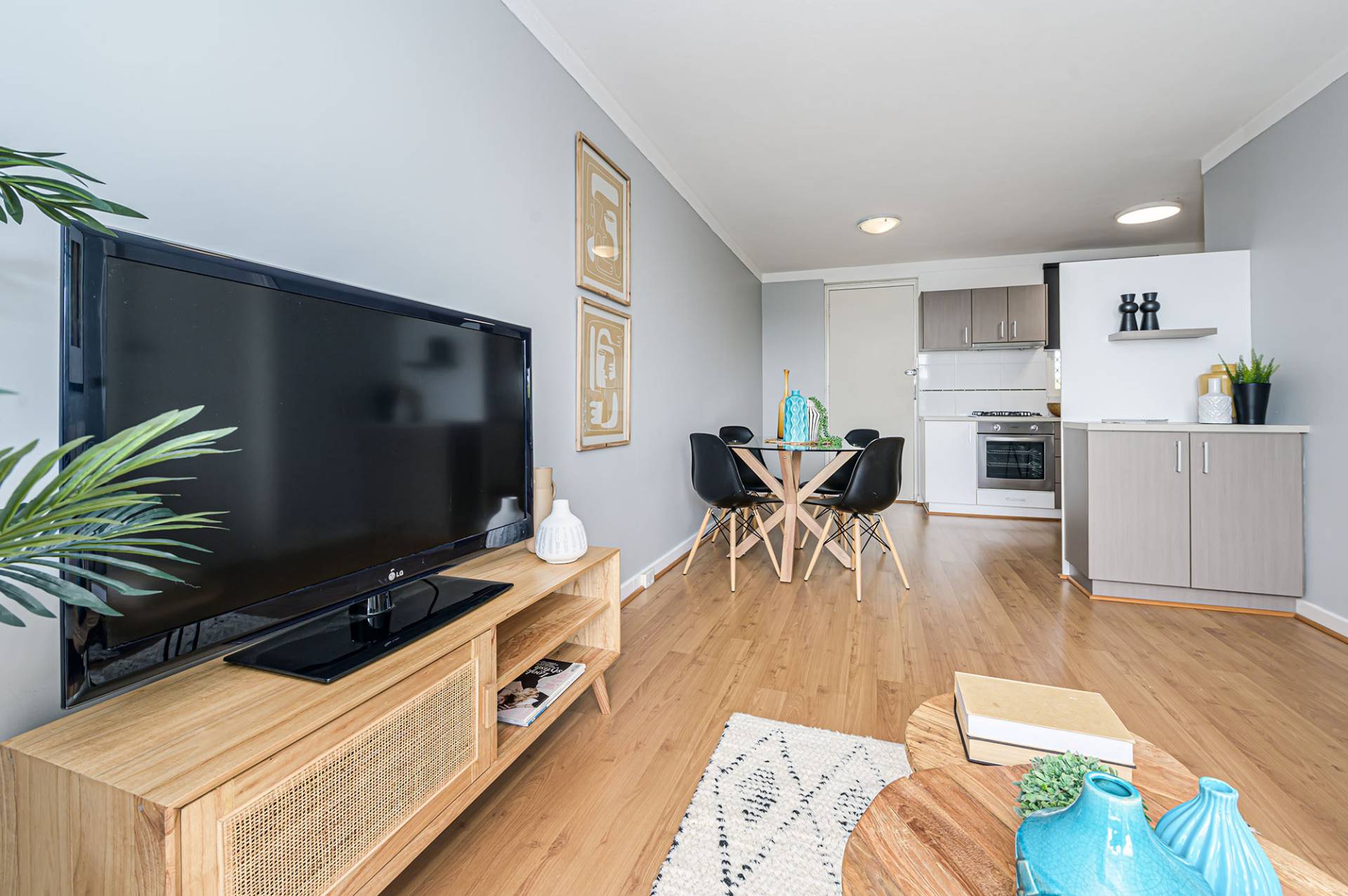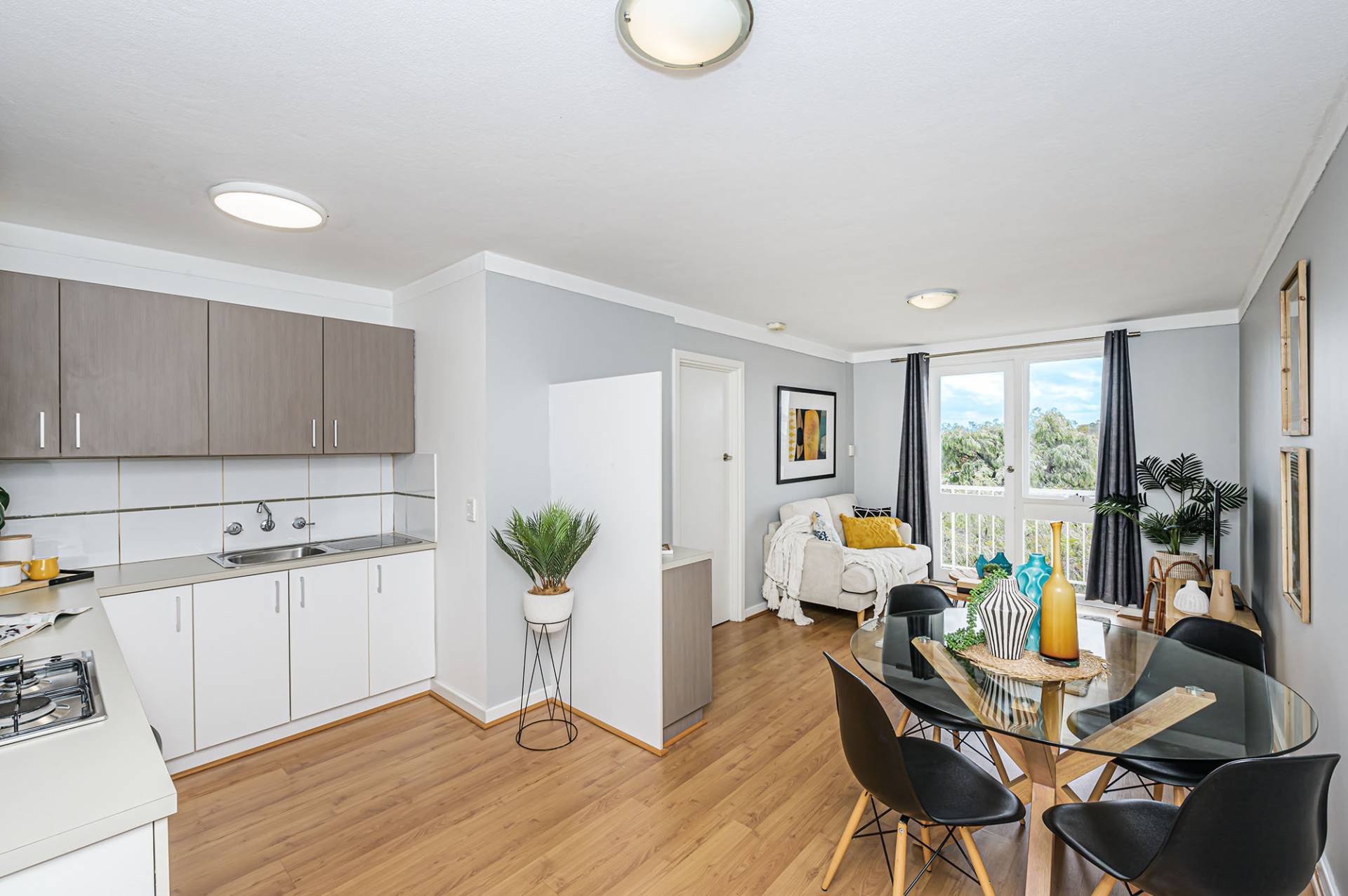 The property boasts a stylish open plan kitchen/dining/living area and a balcony which features panoramic treetop views and stunning views of Perth City. Nestled away from the main road in a secure complex the property highlights stunning hybrid flooring, a modern colour scheme throughout and an abundance of natural light.