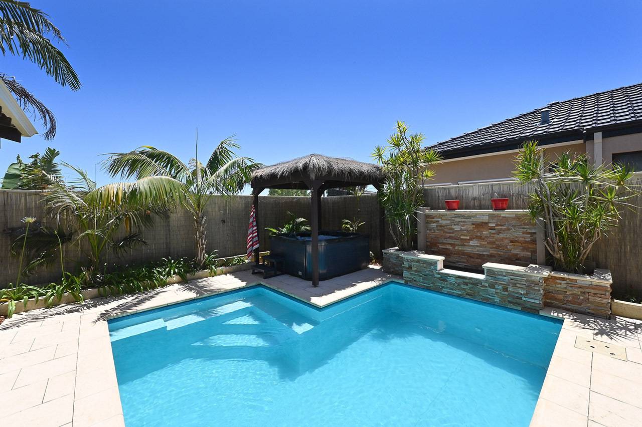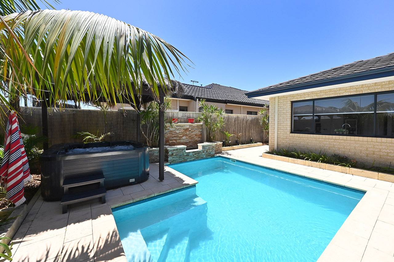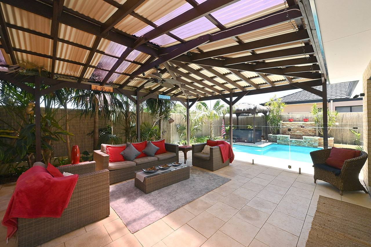 The sparkling pool, Balinese gazebo and spa and easy-care tropical gardens create a resort-style atmosphere perfect for summer fun and unwinding after a busy day.