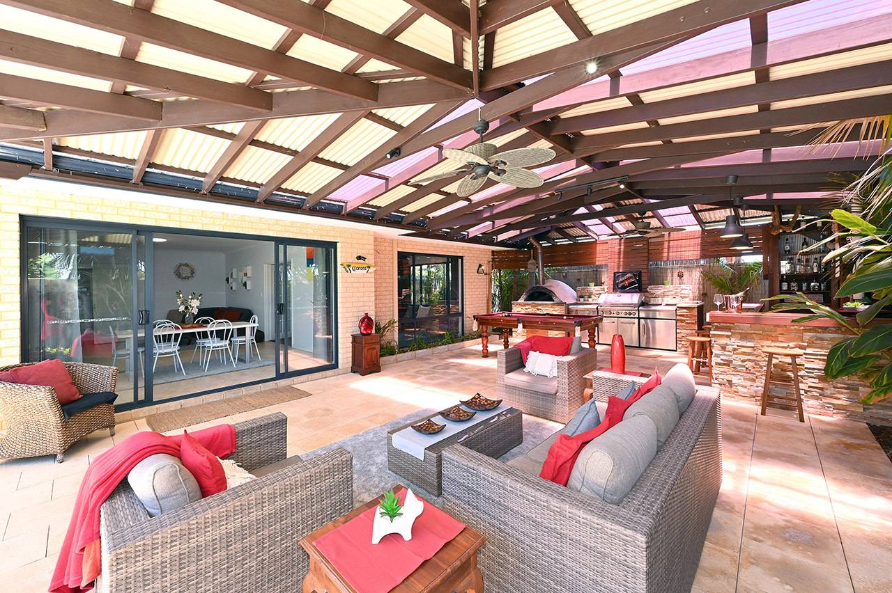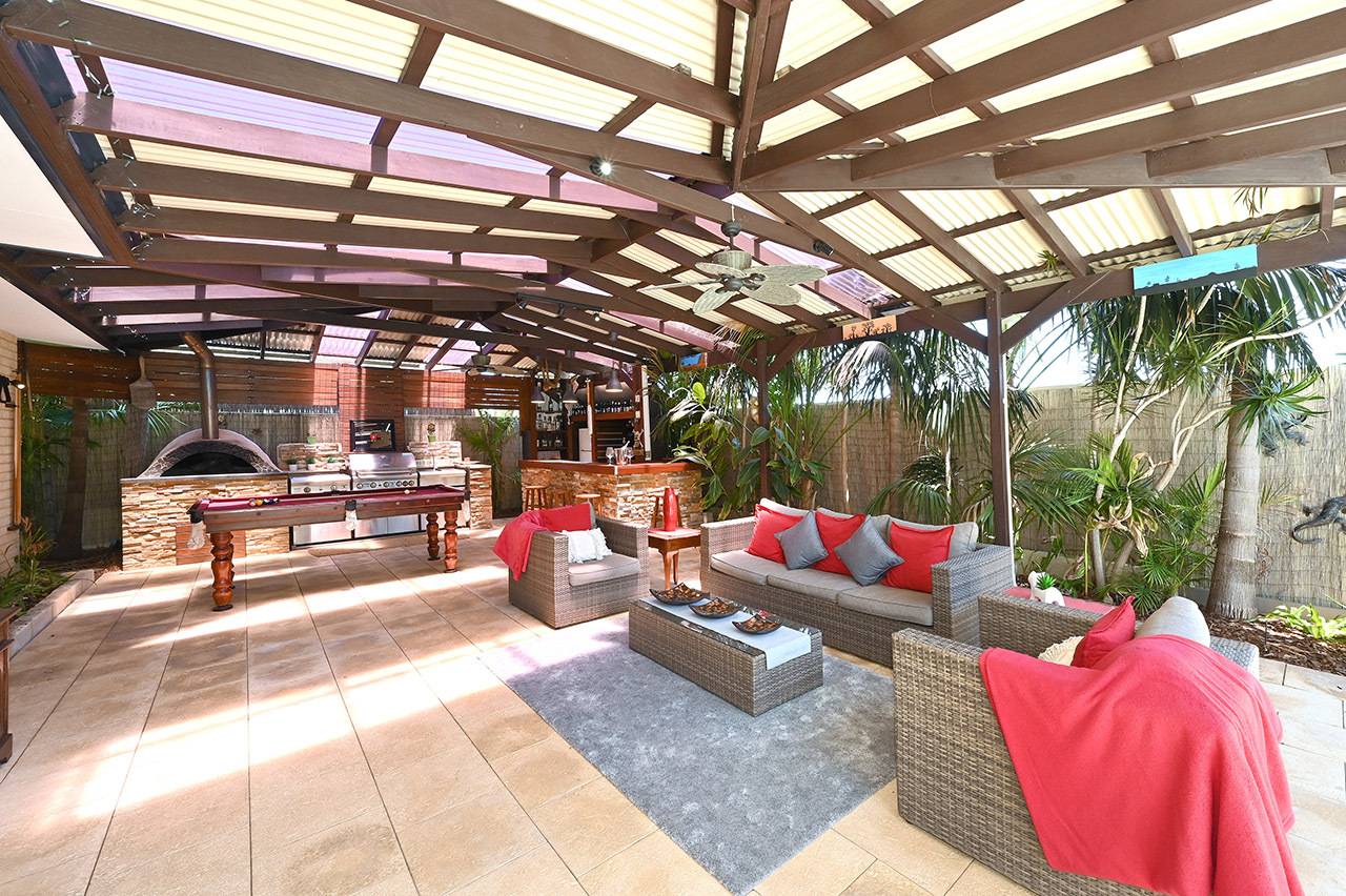 Entertain year-round beneath the huge covered pergola with a built-in bar, pizza oven bbq area connected to mains gas and heaps of space for dining and lounging - you'll soon become everyone's favourite neighbours!